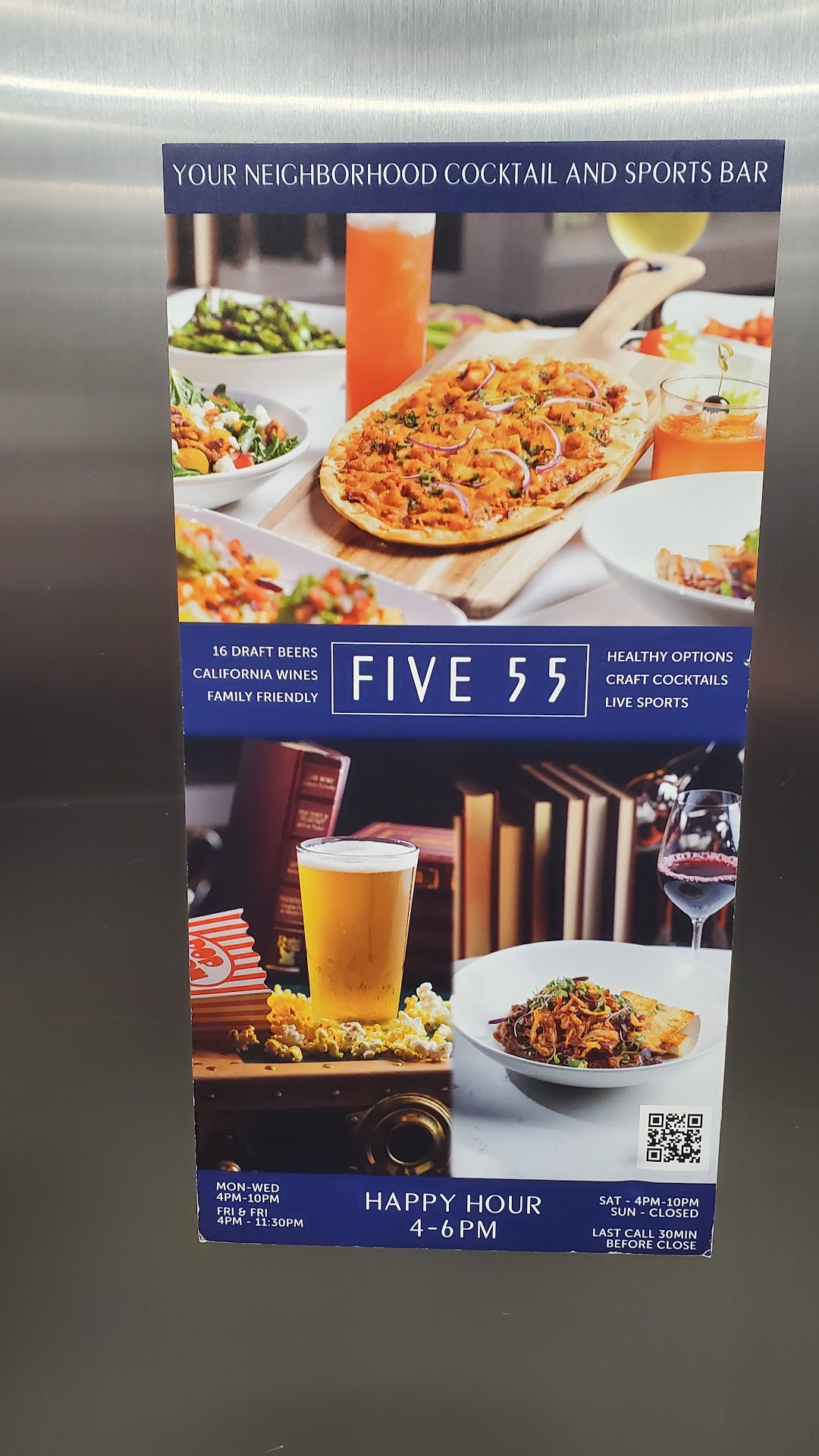 Five55 is a solid Happy Hour food & drink option in Monterey Park. Their smashburger & old fashioned satisfied. Minor adjustments, such as adding a cherry to their Japanese Iwai whiskey old fashioned & improving wait time for orders/bill, would greatly enhance the...