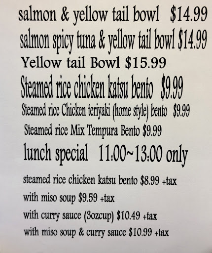 The only thing I wished for is some kind of chicken bowl. He already has the rice, he just needs to toss some chicken into a pan...but I understand he specializes in sushi and doesn't want added complexity to his operation.