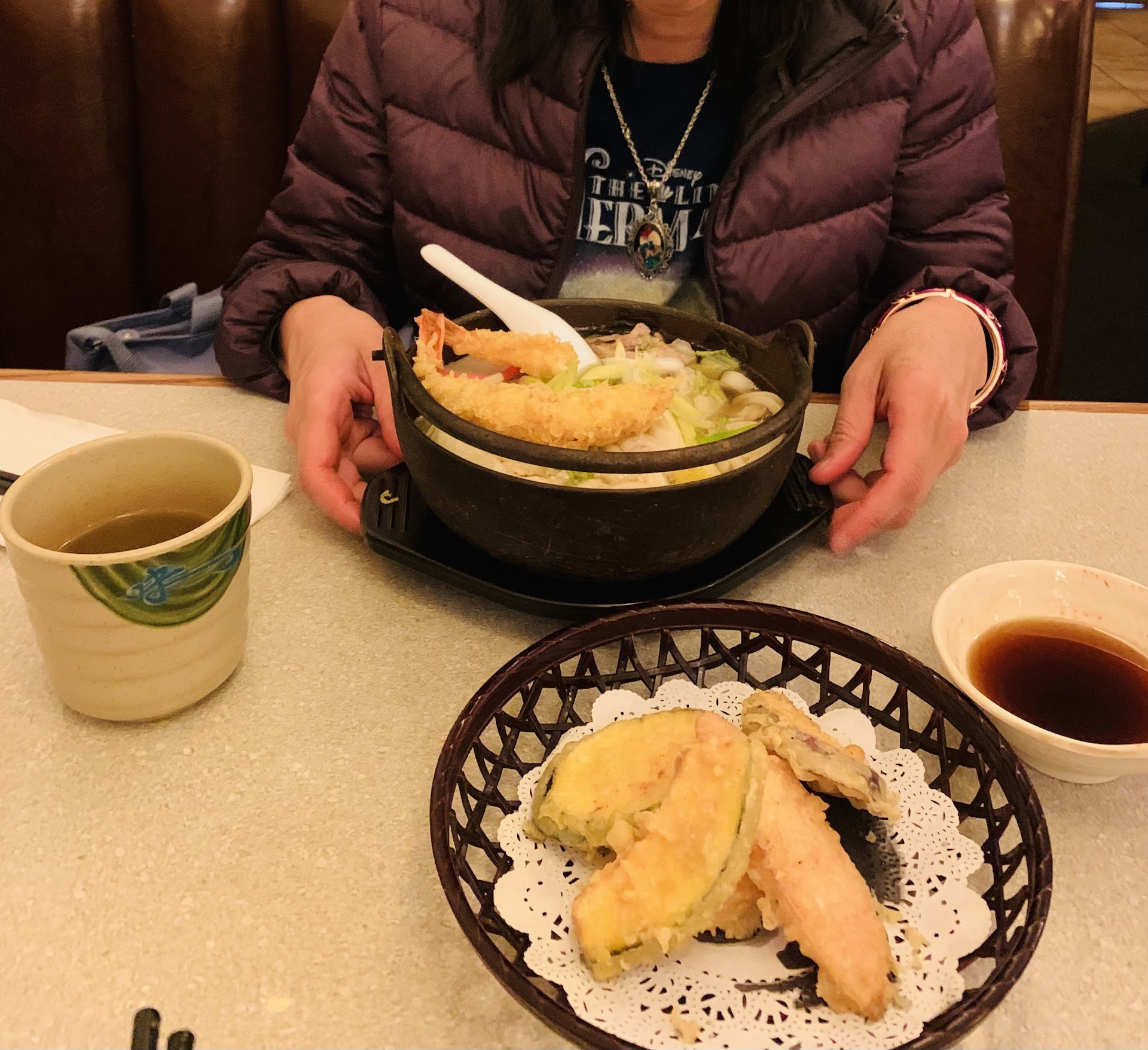 The udon 🍜 was hot and delicious 😋 and our green teas 🍵 kept us very warm as well on a cold day 🥶!