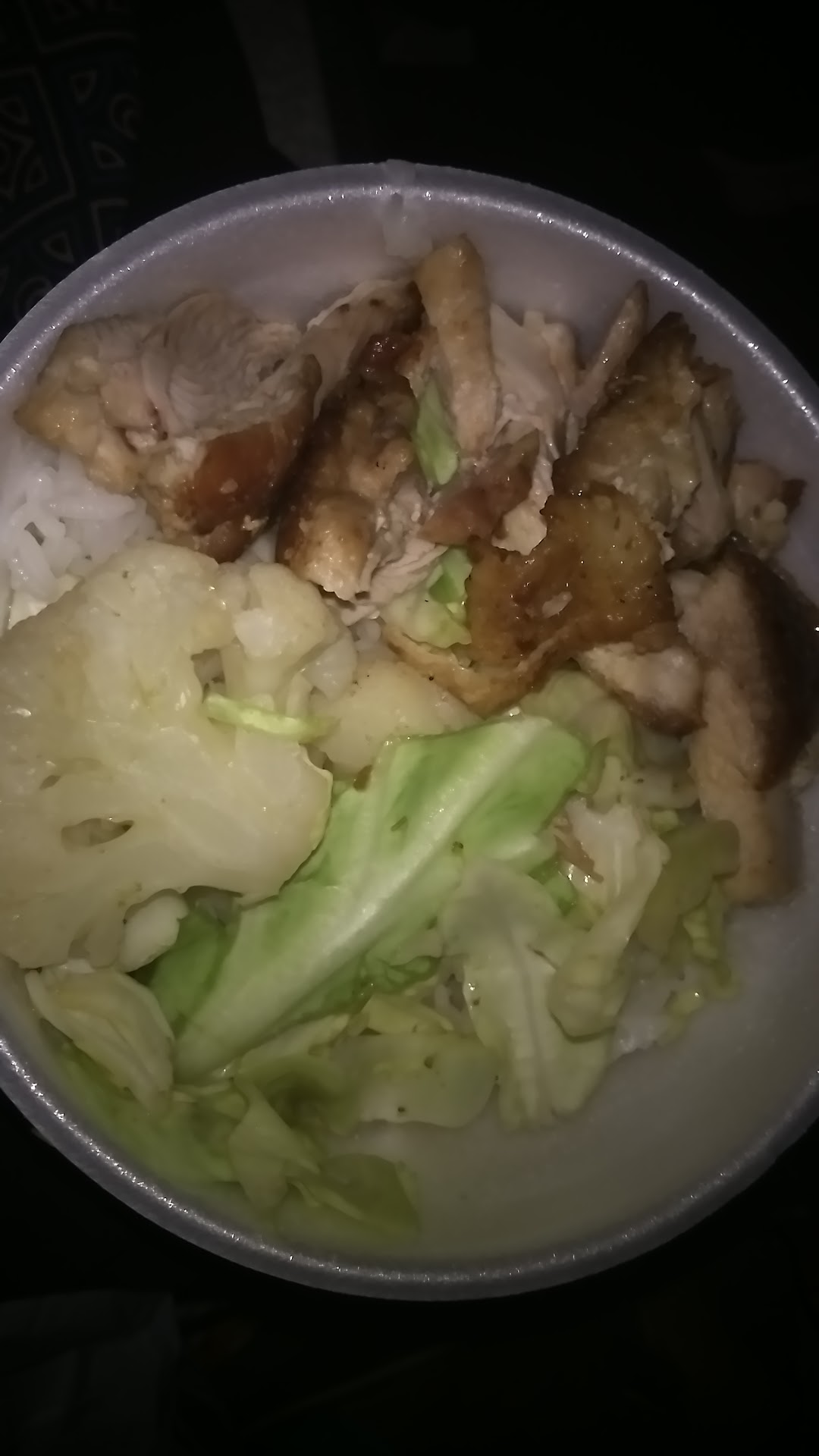 Read moreI ordered a no Salt teriyaki chicken bowl with veggies except coliflower ... Not only I didn't get what I asked for, but got what I asked them to hold. . COLIFLOWER...look right at the center of the bowl.... People needs to pay attention to what the customer wants. We're paying for it it isn't free. What I received is probably worth $3.50 elsewhere.... I won't pay fo meals here if I'm not getting what I want.... I will come in once more....but be careful...