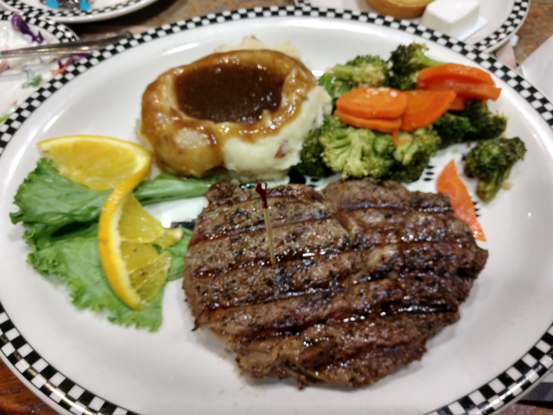 As a father, cleanliness is extremely important to me, especially when dining out with my children. However, I was absolutely disgusted by the state of this restaurant. I accidentally dropped my keys and, to my horror, the carpet was sticky and filthy. This prompted me to look around more closely, and what I saw was unacceptable—crumbs scattered under and around our table, and floors that clearly had not been swept or vacuumed. It was evident that the staff does not make any effort to maintain carpet cleanliness while guests are dining.
