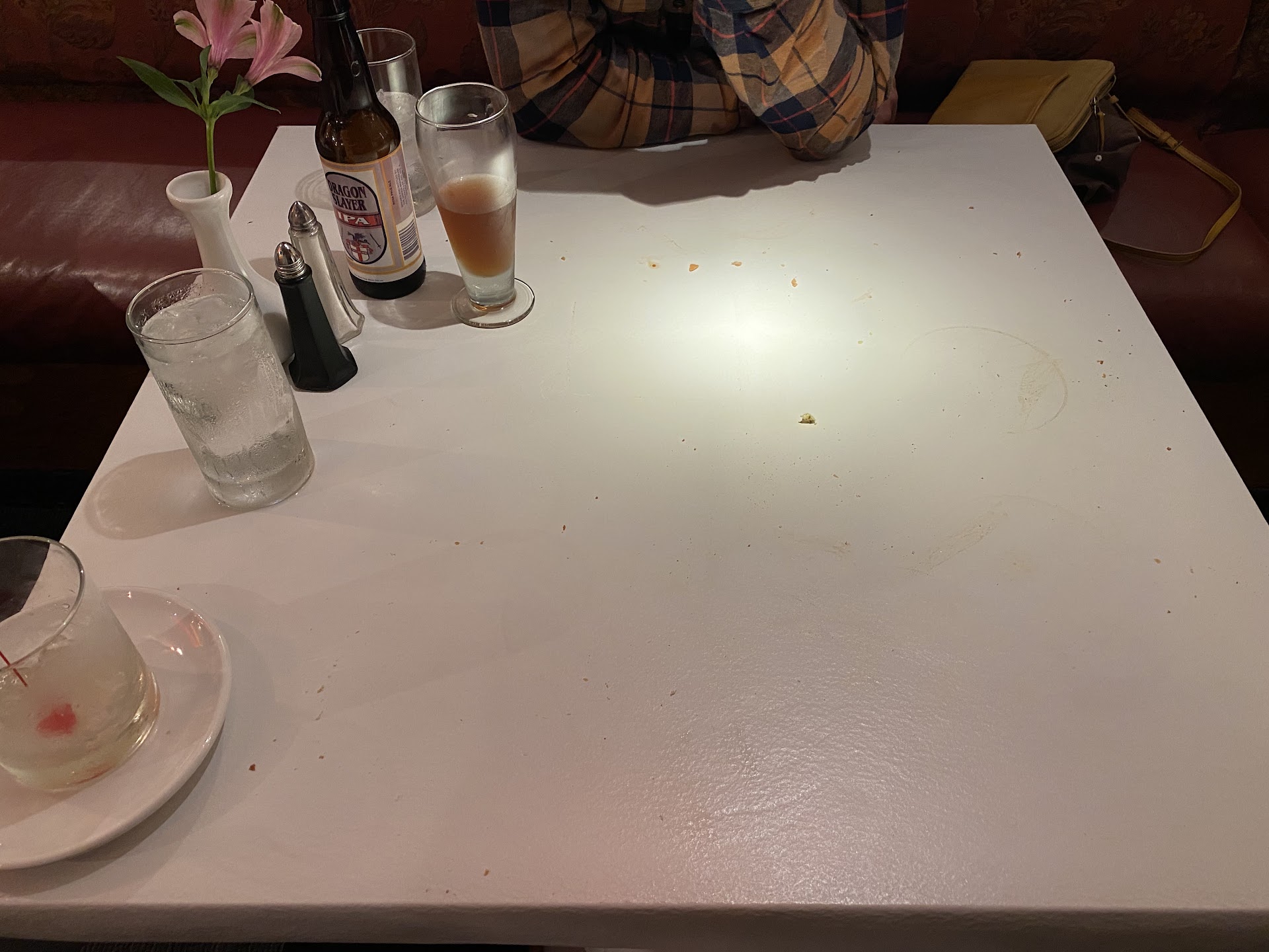 Ah and here’s a picture of our empty table because I forgot to take a picture of the food, we...