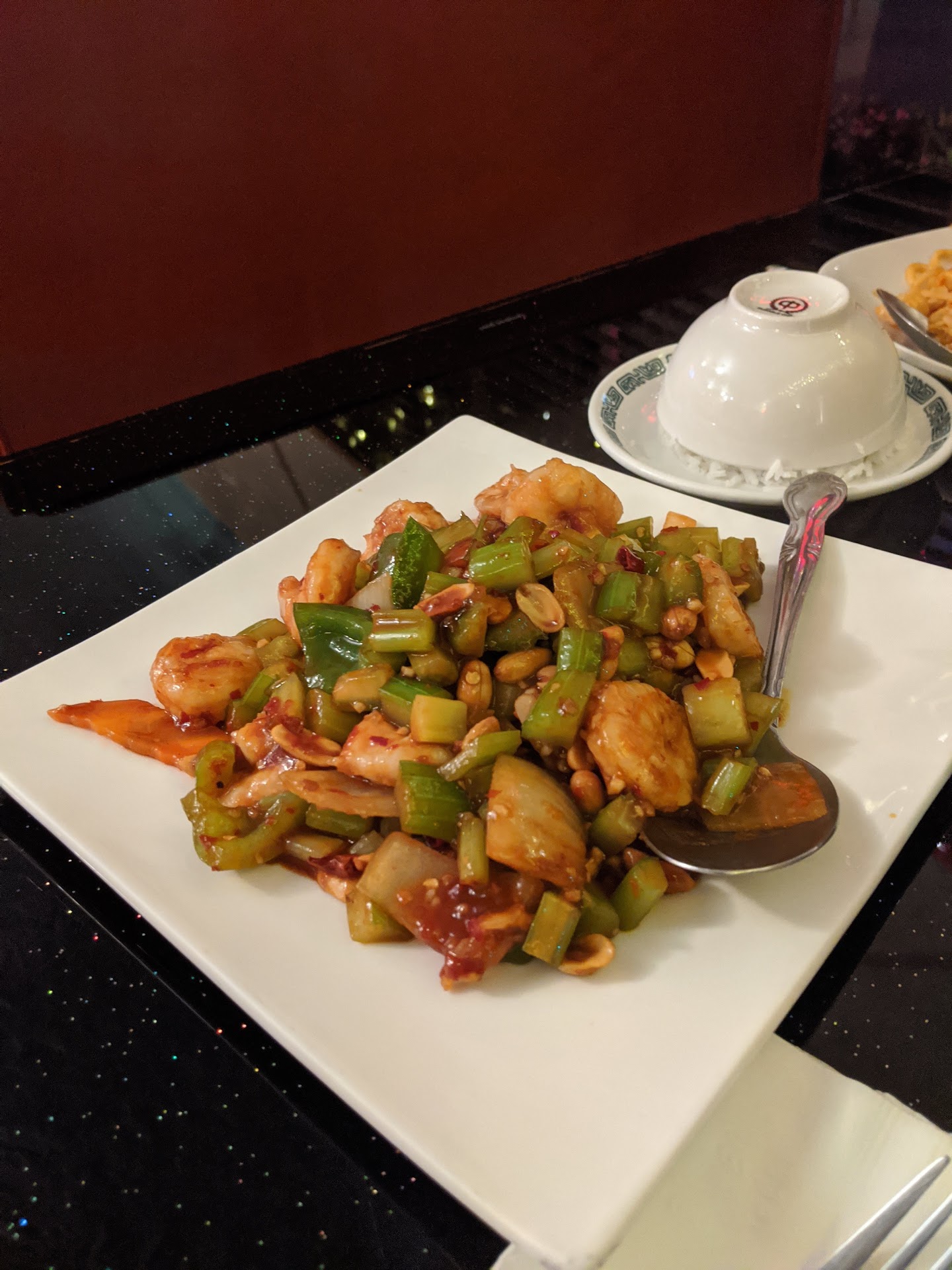 The server had several recommendations when we asked and we ended up going with some of her favorites. We got the kung Pao shrimp, the twice baked pork, chicken chow mein and the crab meat and cheese puffs.