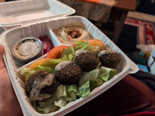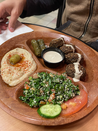 Read moreCute and cozy with REALLY good food! We walked in before closing and got a Gyro Plate and Veggie Plate. For the Gyro Plate - I loved that it included 2 Dolmas, they’re my favorite and at most places I usually have to pick between eating a meat option or veggie option so I was grateful I got a bit of both worlds at this place. The gyro meat was flavorful and cooked well, the tzatziki sauce was jam packed with good spices and the pita was nice and fluffy. The salad had just a smidge too much dressing for my taste but it’s not a deal breaker. The Veggie Plate was also delicious - moist and flavorful falafel and hummus and good tabouleh. My only comment is that the fridge for drinks was out of order, but maybe they’ll fix it soon. Overall, the atmosphere was quiet, welcoming, and the food was good...