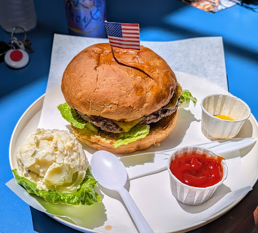 The American hamburger was okay, I've had better. Although a decent size patty, the bun was too much and wiped out the meat. The bun was fine just too much bread for a single patty. If you want to taste the patty order the double patty burger. (Note: came in to order 5 double patty burgers just to find a dbl is not longer offered, I went to another local for the burgers) The tomato, lettuce & onion garnish were garden fresh. I asked for no "special sauce" hence the ketchup & mustard. Your choice of chips or potato salad. The only flavor in the potato salad was the sweet relish. There are good potato salad recipes, Mundos needs to dump this one & be creative. My wife had the California chicken sandwich. She enjoyed the bread being crisp on the outside & soft on the inside. An ample amount of fresh vegetables with a tasty but rather thin sampling of over-cooked chicken. She did enjoy the house chipotle sauce. The service was good & the food arrived hot. The atmosphere is very plain. For beverages there's no soda machine only canned selections. The bathroom was clean. My recommendation is, if you order a burger...