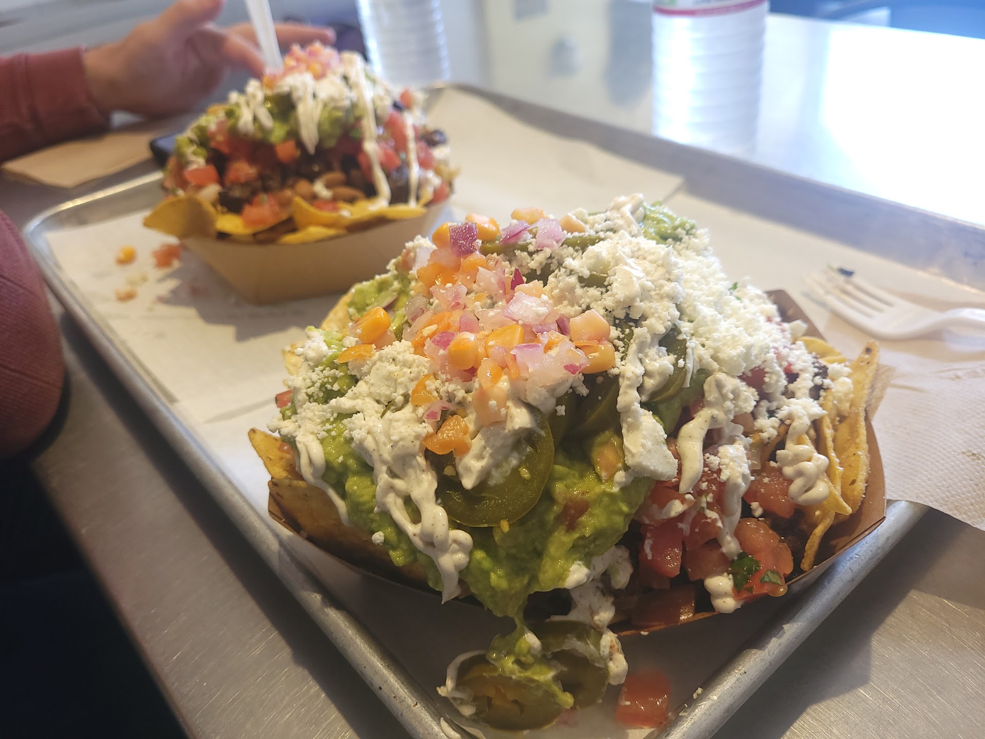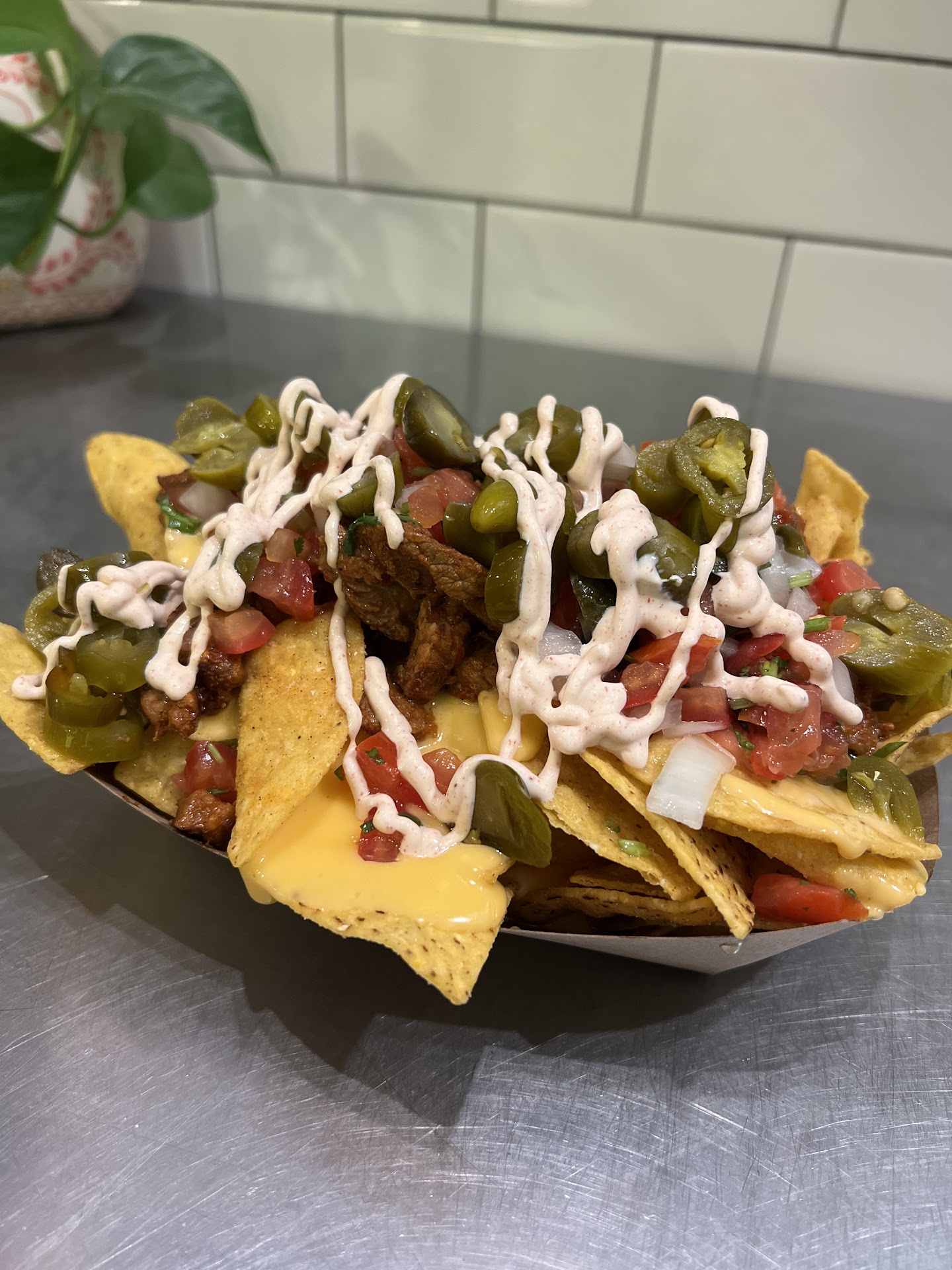 Read moreAbsolutely amazing from a simplistic menu. We ordered the Phife, a beautiful macho-nacho combination of all their side options, and the Mac Bowl, mac n cheese with your choice of toppings- we chose pico de gallo and Carne asada. And lemme tell you, having the Phife gave you an implosive stride across all their meats, cheeses, and side options with a flared sprinkle of Cotija all over. Yet. Not one flavor disagreed with one another. Which is surprising for overloaded nachos. That alone shows the excellence of their individual recipes. The meats, too, showed no hints of dryness. Included an eery tenderness that sensually marinated your tongue's pallete. Chopped tiny so no bite goes empty. My only gripe is the cheese seeps to the bottom making a cheesy swamp. So start from the bottom to maintain that yummy tortilla CRONCH! The Mac Bowl on the other hand tasted well with the Jack cheese topped with a meager amount of carne asada and pico de gallo. I despised the idea of pico de gallo but it surprised me. Adding a faint tang I didnt know would go so well, and due to the low viscosity of the cheese the macaroni never felt engulfed in dairy. Rather, it gave the opportunity of a light taste or a chance to stir for more. All in all. Why you still reading...