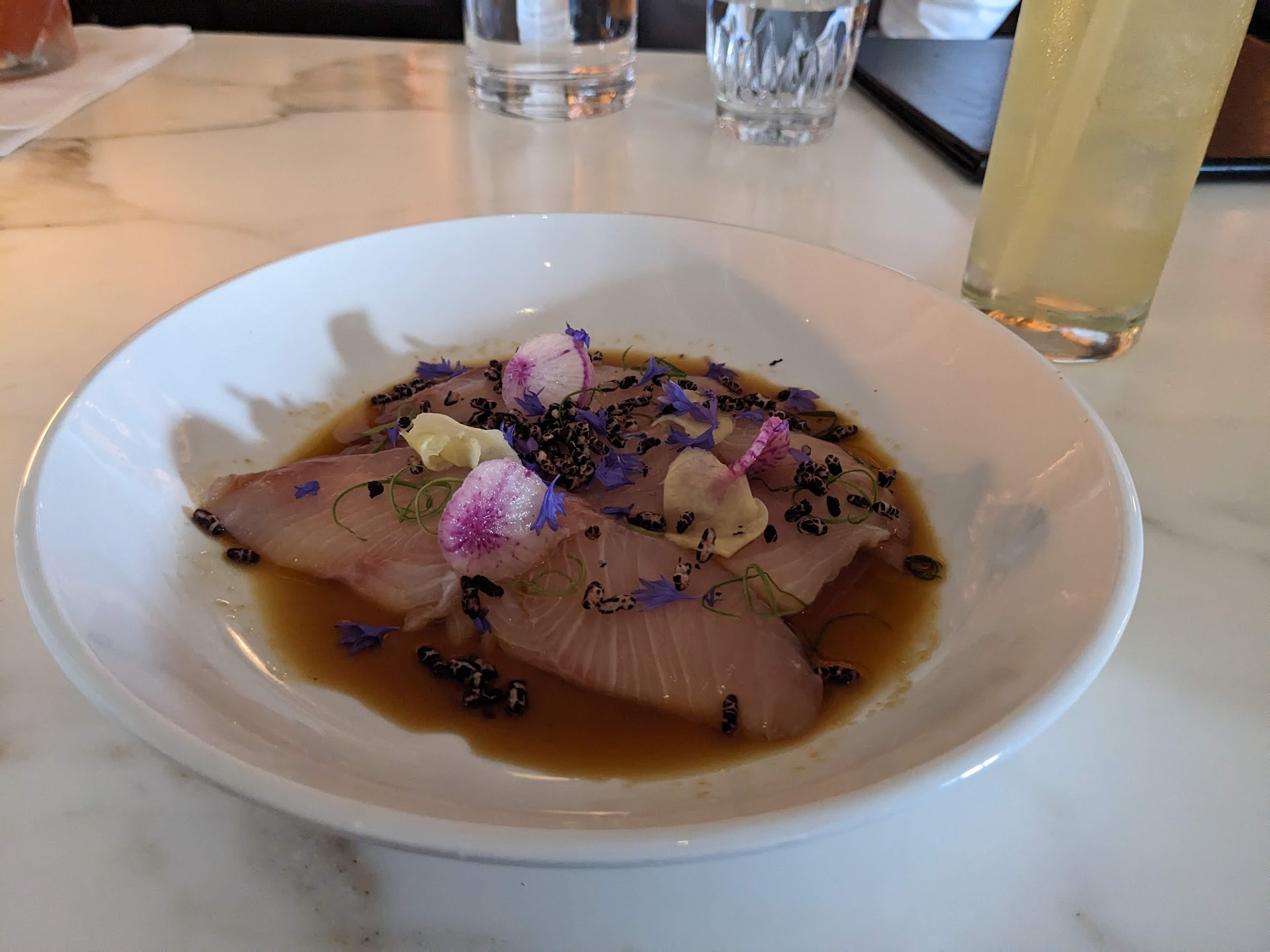 I came here for an early dinner on a Saturday and sat at the bar. I proceeded to have a full meal and dessert, which were all excellent. I appreciated the fact that their cocktails menu even called out a low ABV drink, which I ordered. I started with the yellowtail crudo.