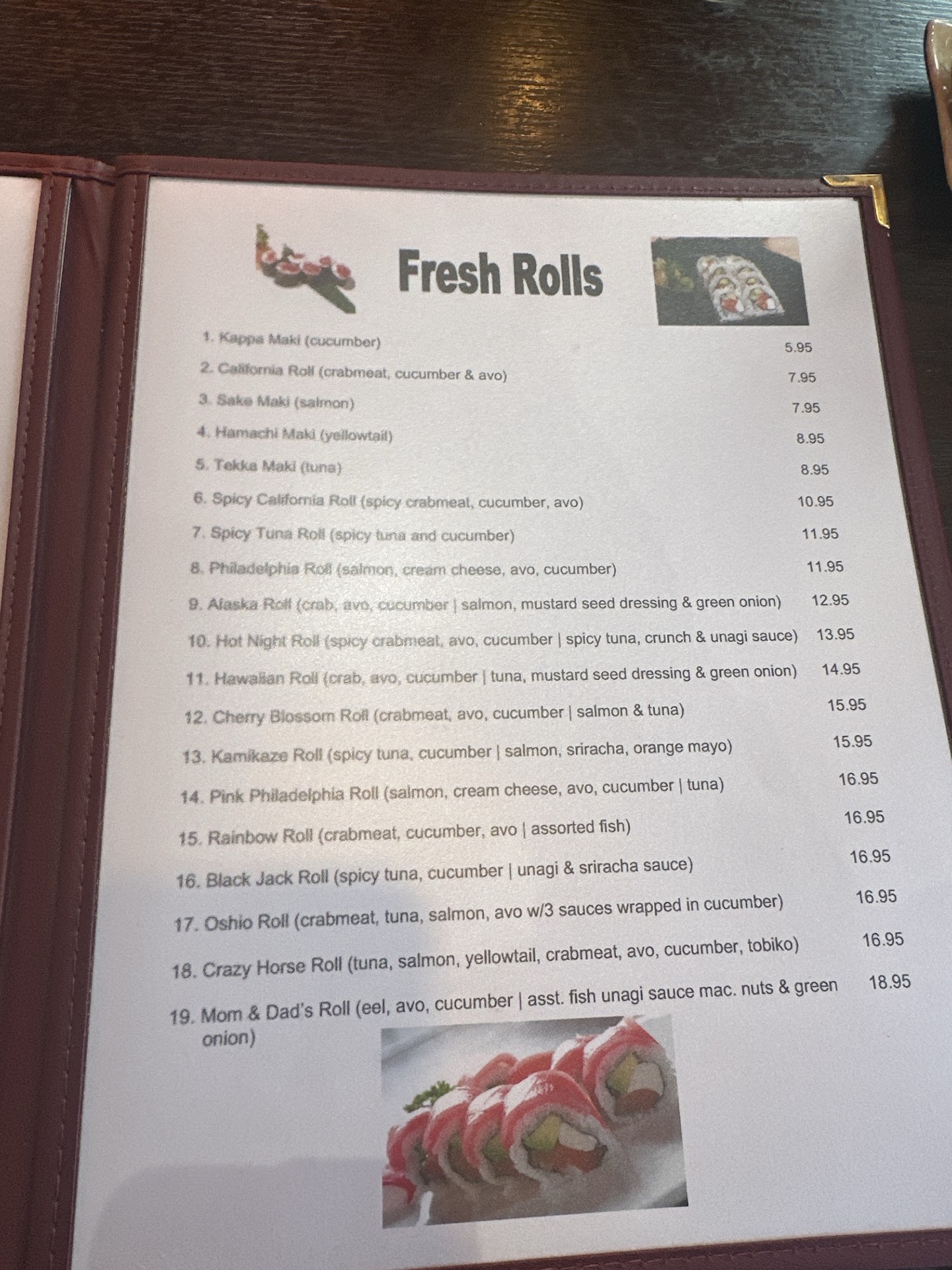 Read moreParading as a Japanese restaurant (serving many items a traditional Japanese restaurant would) this is an American restaurant, and not a good one at that, serving sushi and "ramen". I ordered a couple rolls and the ramen. The sushi rice was well overdone and sushi was drowned in sauce, the real crab in the roll was dry and had no flavor, (canned?). The ramen was actually terrible, a cup o noodle is more enjoyable but a lot actually. The broth lacked any depth, clearly just a shelf bought stock with some seasonigs thrown in, the pork was some sort of dry piece of leather with no flavor, the soft boiled eggs were marinated and underdone and I've never had noodles that just tasted like eggyolk. Overall, yuck. Not going back, would not recommend. The second star is because they were friendly. Oh and the draft...