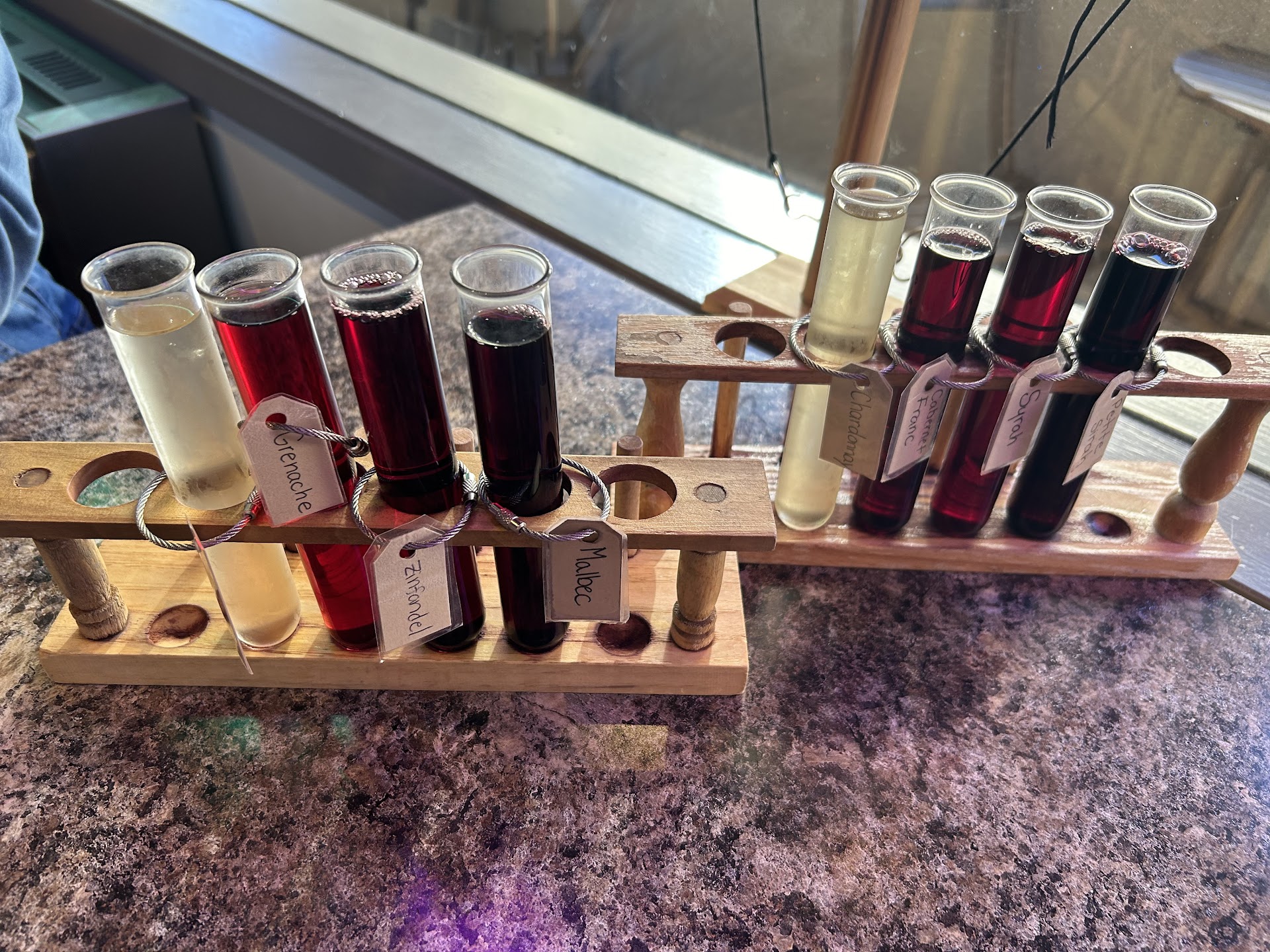 When you get the wine in test tubes you can also blend your own. They said that if you create a blend you like they can make you a bottle. You better keep track of your blend percentages for that to work.