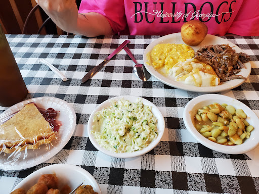 Read moreLocal favorite but not cheap! $49.00 for lunch a 9 yr old kid 2 adults. Farmers all eat here. Grab a tray pick up what you want for salad and dessert alacarte then they serve you a choice of meats (brisket was great) and choice of sides (broccoli cheese and squash casserole were big time light on veggies BRIGHT ORANGE cheese sauce not that good) i had mashed potatoes and gravy. The gravy was gel type stuff not homemade and had no flavor...