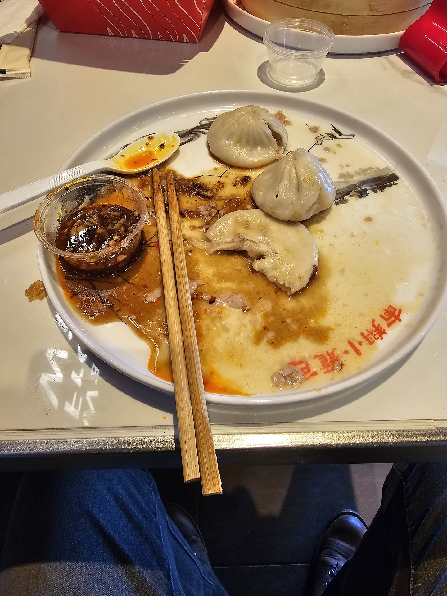 Read moreActually, our first time eating hear. Stopped in for Lunch on Sat. I was surprised that it had been open since Dec. Nice place, as clean as it looks in many of the pictures. My wife and I ordered at the touch screen, the soup dumplings, cucumber salad and a hot pepper beef noodle dish for me and the vegetable noodle soup for her and specialty drinks, lychee and lemon. The food and drinks came out relatively fast, delivered to our table. It was all delicious. Soup dumplings were up there. (compared with Din Tai Fun in Singapore) Spice level was mild for me, but they had good soy sauce, vinegar and hot sauce at the table. Overall I'd recommend stopping in during shopping, or taking out depends on what. We don't like paying for delivery, but if that is your thing, I imagine it works. Soup dumplings are best fresh from the kitchen. Parking is good in that corner, between Macy's and Wegmans. Hope they are successful so we can...