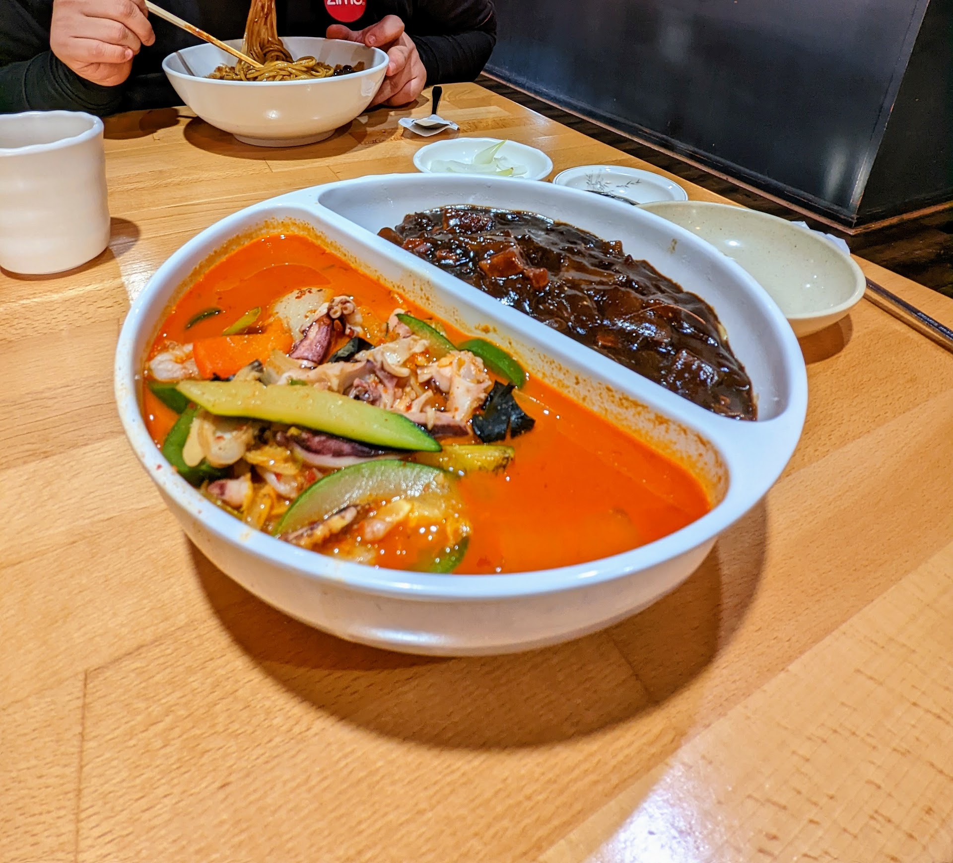 Only Non-koreans or 2nd gens who probably haven’t had this type of dish in Korea seem to like this place without a proper idea of what an authentic Korean Chinese food tastes like. This is not how a Korean Chinese food is like at all- Absolutely lacks flavor, no depth to the broth. Most importantly, ordered Udon( which came out as a dish I’ve never seen or heard of. Has eggs spread all over the top of the noodles) and there was a hairlike particle. Told the waiter, who looked confused without any word of apology. They didn’t take the dish away. I Insisted on sending the dish back, to which they finally took the dish and ordered something else.