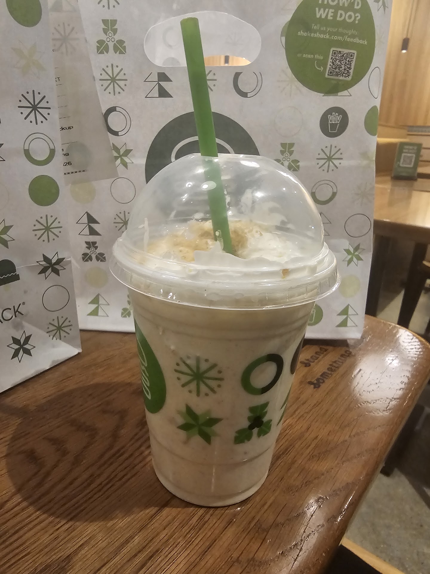 Once we dines in and ordered Chicken Shack , Chicken Bites, Fries , Chocolate shake & Banana pudding shake. Overall, the food at shake shack the burger was good, but a bit on the oily side. The chicken patty felt greasy, and the chicken bites were just okay — nothing standout. On the bright side, the fries were perfect, and the shakes were absolutely delicious — creamy, flavorful, and a real highlight of the meal.