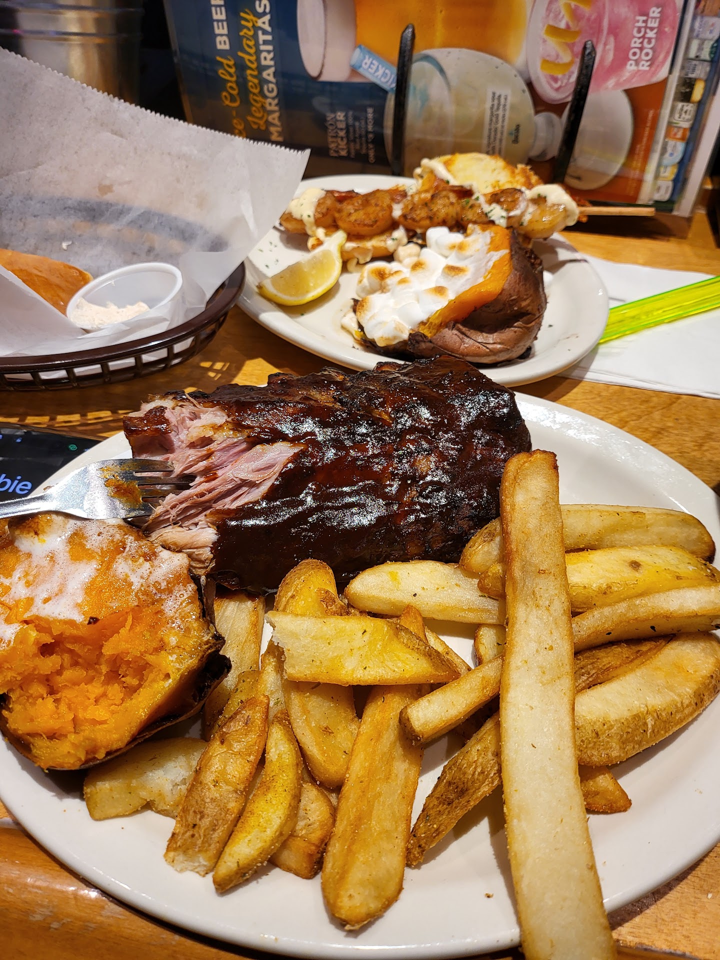 Read moreAs I walked into the restaurant, the lively atmosphere was infectious. The rustic decor, with wooden booths and cowboy-themed accents, sets the stage for a casual yet vibrant dining experience. The air was filled with the aroma of grilling meats and baked bread, drawing me in and heightening my expectations for a great meal. The Dish: Ribs and Shrimp When my order arrived, I was first struck by the generous portions. The ribs were beautifully glazed with Texas Roadhouse’s signature BBQ sauce, glistening and inviting. As I took my first bite, the meat fell off the bone with ease, showcasing perfect cooking. The combination of smoky flavors and a sweet, tangy sauce danced on my palate, providing a rich and satisfying experience. The shrimp, grilled to perfection, were seasoned just right, offering a delightful contrast to the hearty ribs. They retained their juiciness and had a slight char that added depth to each bite. The dish was accompanied by a side of crispy fries and fresh sweet potato, which balanced the richness of the main entries. To complement my meal, I ordered a Jamaican margarita. Served in a large glass with a salted rim, it was both refreshing and vibrant. The balance of tequila, lime juice, and pineapple liqueur was spot-on, delivering a zesty kick that perfectly cut through the richness of the ribs and shrimp. With each sip, I felt the warmth of the Texas sun, making it an ideal pairing. My experience at Texas Roadhouse was nothing short of delightful. The ribs and shrimp put forth a symphony of flavors that would satisfy any meat lover, and the margarita was the cherry on top of a fantastic meal. If you’re seeking a casual dining experience filled with hearty, mouthwatering dishes and a lively atmosphere, Texas Roadhouse is certainly a destination worth exploring. All thanks to Alyssa as she moved back and forth and kept checking on me in a timely manner just to make sure i was good and satisfied.. It's a really...