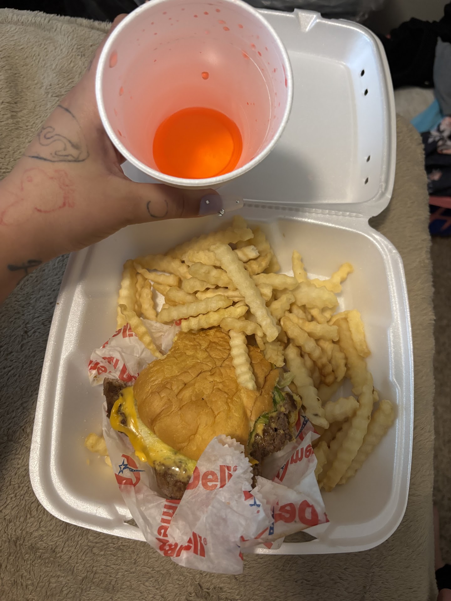 Ā Ā Ā Read more4/17/18 4:30 pm ~Not a good visit today, not busy , about 2 other orders ahead of my small fries and coke ($3.28) cashier was not friendly and a bit short worded/rude. No thank you or greeting except "what do you want" plenty of staff behind counter (5) Personally I prefer staff working at food service to have long hair put up in a hair net than to see them run hands thru it and then hand your food over. Asked if they had a restroom and the woman said yep and pointed to a wall. Restroom was dirty, obviously not checked regularly with the mess in there. Lock on door not working and I had someone open it while I was there. Hard to rate food when it's just fries and a soda, but their tiny crinkly fries were hot, fresh, good and not over cooked. Overall experience with facility, cleanliness, service, prices total a 1&half š. Mostly due to staff & not being cleaned up. Hope these will...