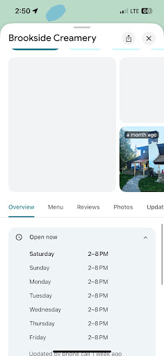 Arrived at 2:50 to grab a maple cremee while we were briefly in the area and we were turned away. Google says it was open at 2pm and the owner yelled to us they didn’t open at 3. Large dogs were running around loose....