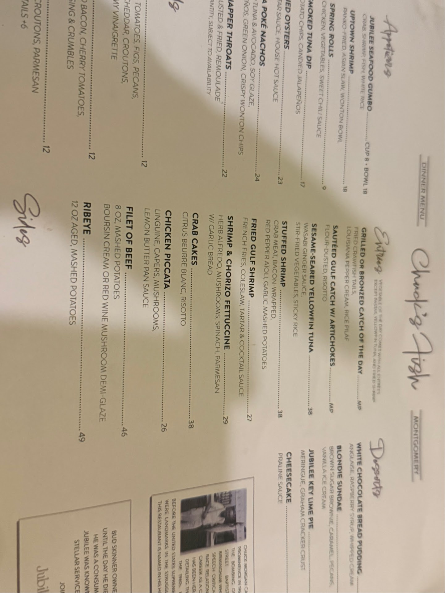 Read moreChuck’s Montgomery is a delightful spot if you’re in the mood for fresh seafood and a vibrant atmosphere. Our evening began perfectly at the bar, enjoying well-crafted cocktails before moving on to dinner. We kicked things off with the wedge salad, which was deliciously crisp and flavorful, although the bacon could have been fresher instead of pre-packaged.