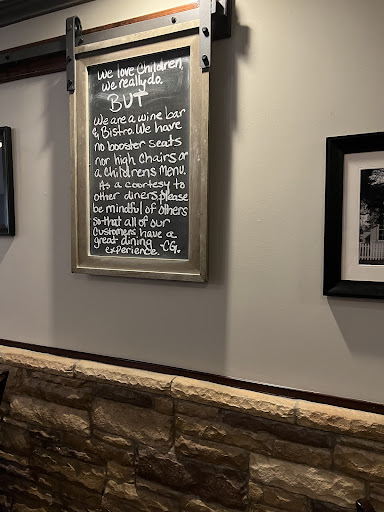 As we were finishing our dessert (it was now about 545pm and the dinner rush was starting to trickle in), a waiter took down a decorative chalk sign and returned a few minutes later with the same sign, but a new message. He hung this sign directly above our table. See picture - it reads "we love children. We really do. BUT. We are a wine bar and bistro. We have no booster seats nor high chairs or a children's menu. As a courtesy to other diners, please be mindful of others so that all of our customers have a great dining experience."