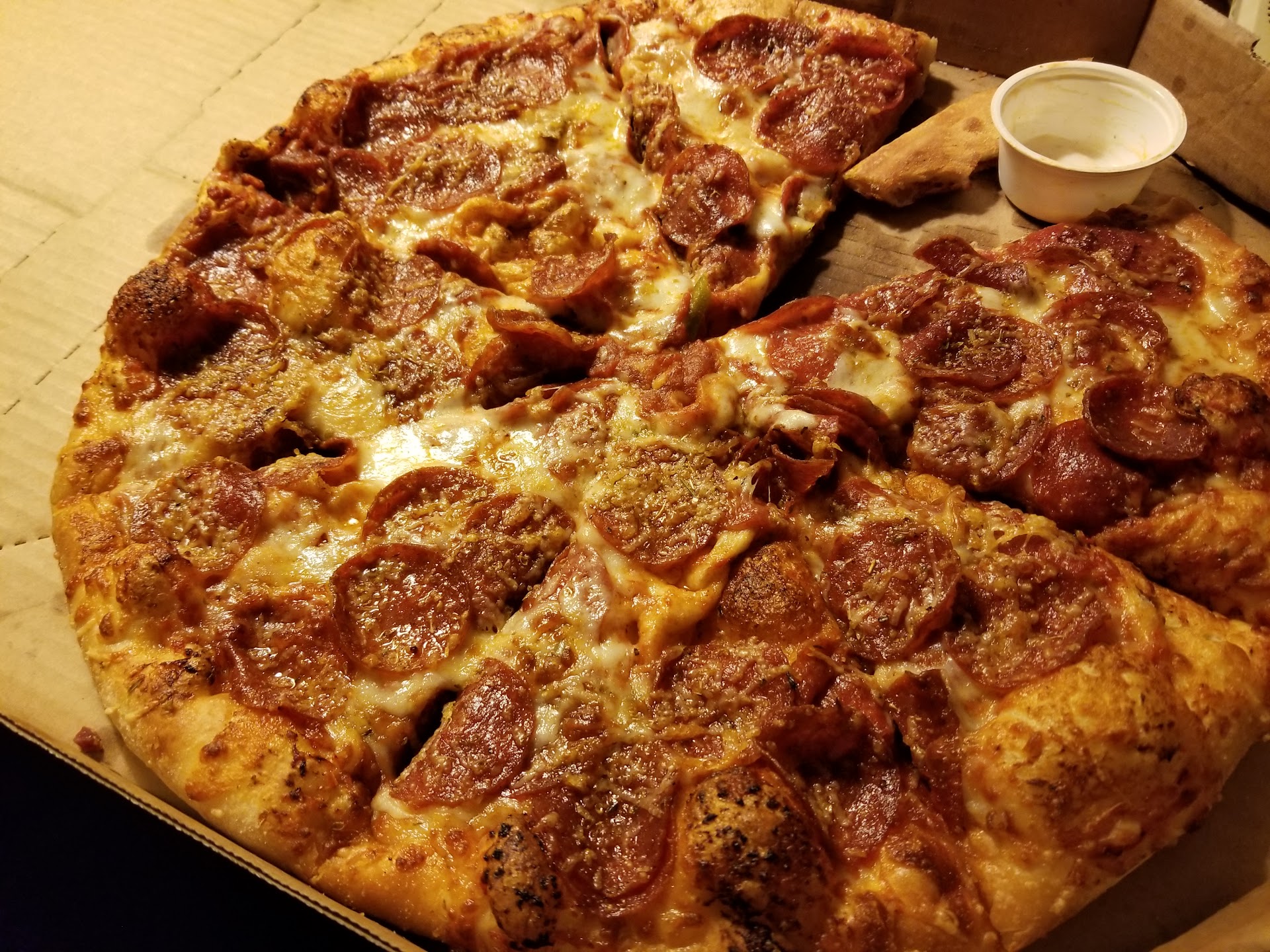 So, there I was, sitting in the bed of my father-in-laws truck on my way to pick up some simple premade dinner for my wife as I am just returning from a business trip. I placed the order using the highly convenient Dominos App, Medium-Pan with mushrooms and extra cheddar cheese. Fair price, modest timeline. We pull up to the dominos after missing the chance to dodge not 1 but 3 red lights.