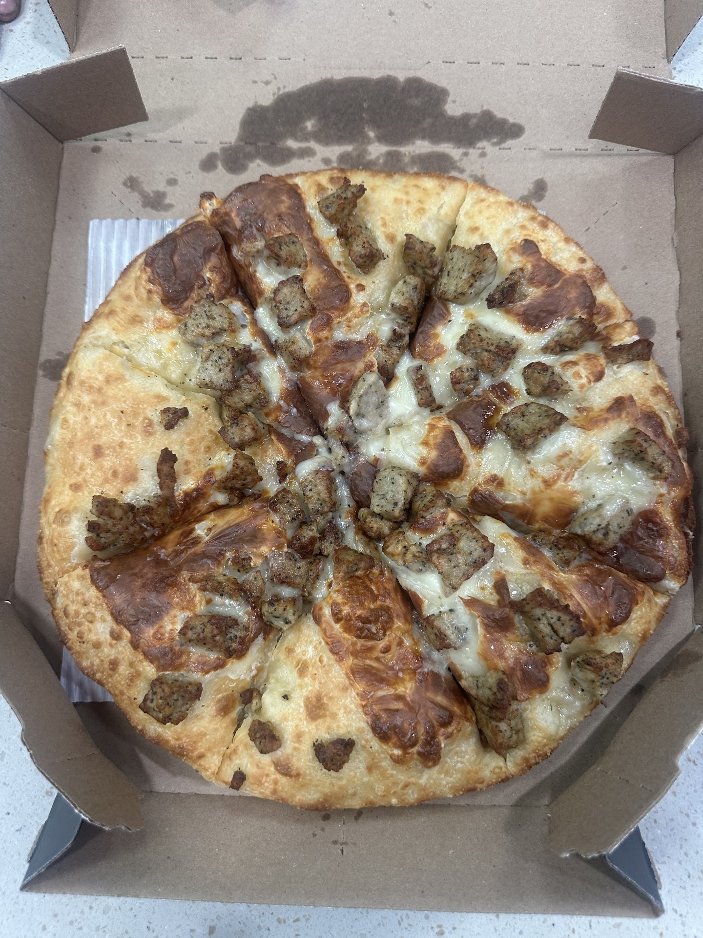 Read moreI have read that service was slow at this location. That was not my experience. Did was prepared with and the person behind the counter was pleasant. That’s why it gets two stars. The food maaayyybbbeee would get two on its own. I really like their pan pizza for a quick made pie Domino’s typically does a very fine job. I’ve had a three star pan pizza at another Domino’s location but I really dig it for what it is at the large majority of the locations. This location’s pan pizza was a bit bland but not horrible. I’d say it’s edible while falling short of satisfying, even at the price point. What was inexcusable were the Parmesan rinds…, or bites. I really thought that were a cross between pork rinds and Parmesan bites. Crunchy, small, greasy and overly buttered they were 1 stars, if that. I felt a bit sick after eating about 5 or so. I should have known better and stopped but I was foolish. I contacted corporate to make inquire if these are the new bites since I haven’t had any in a while. One week later, no response. Maybe they are the new norm at Domino’s. I don’t know and I’ll really have to have a strong interest to find out...