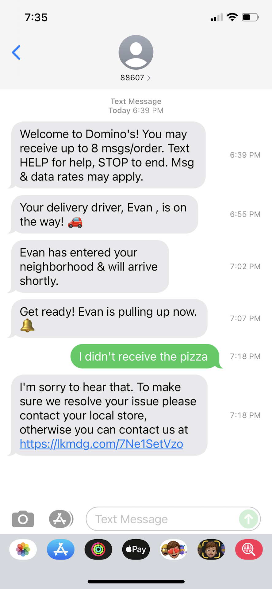 So a few things here: The app shouldn’t show my food is being delivered when it hasn’t even been made. I shouldn’t have been able to order delivery if the location doesn’t offer it. The employee should have left a voicemail with the information and not wasted my time trying to call back for it.