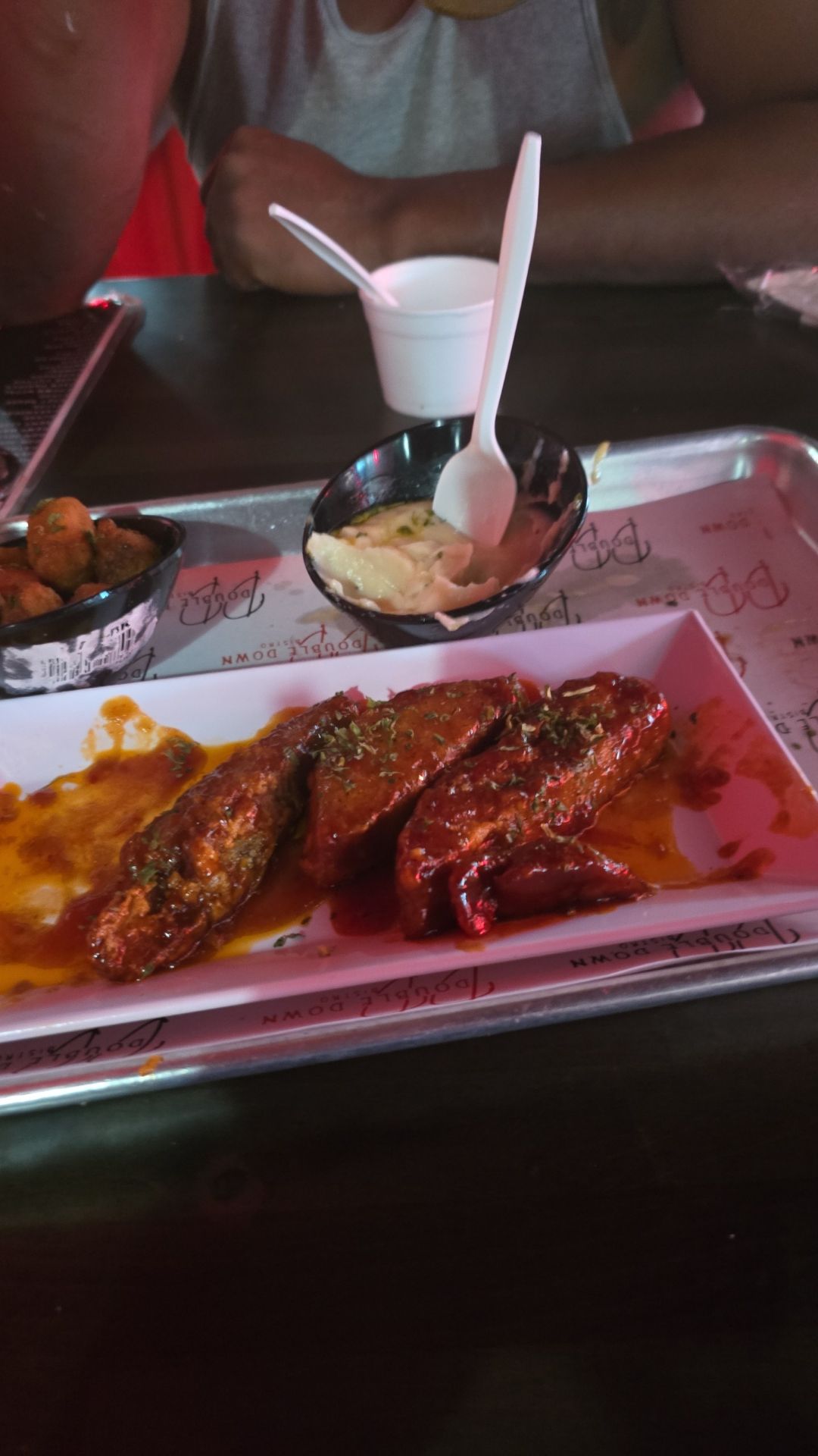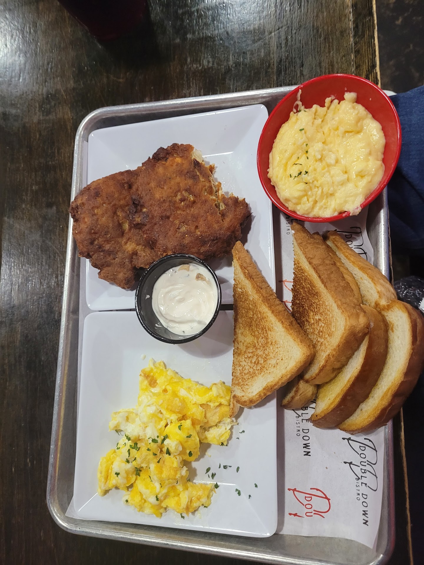 Read moreIf you're looking for a restaurant that has an amazing soul food taste and even more amazing customer service Double Down Bistro should be your go to. As soon as we walked in we were greeted with a real welcoming smile who introduced herself right away. It honestly shocked me at first, I have never had a greeting so welcoming like that in any restaurant EVER!!!!!! We were quickly sat and had our drinks. Fried chicken (OH MY GOSH) I wanted more or it. The macaroni was cheesy just the way I liked it, and the lima beans had so much flavor. The cornbread has some kind of secret ingredient, maybe cake mix, but definitely sweet and moist. Everything we tried was delicious 😋 THE CUSTOMER SERVICE THOUGH!!!!! From the host, to the bartender, to the kitchen staff absolutely amazing. Not your typical service in Montgomery. We sat at the bar, and when I tell you any staff member that walked by smiled, asked how everything was, and was just so friendly. When anyone would get up from the table to leave you could hear the staff telling everyone "hoped you enjoyed it, come back to see us". By far the best customer service from all staff positions I have ever experienced....