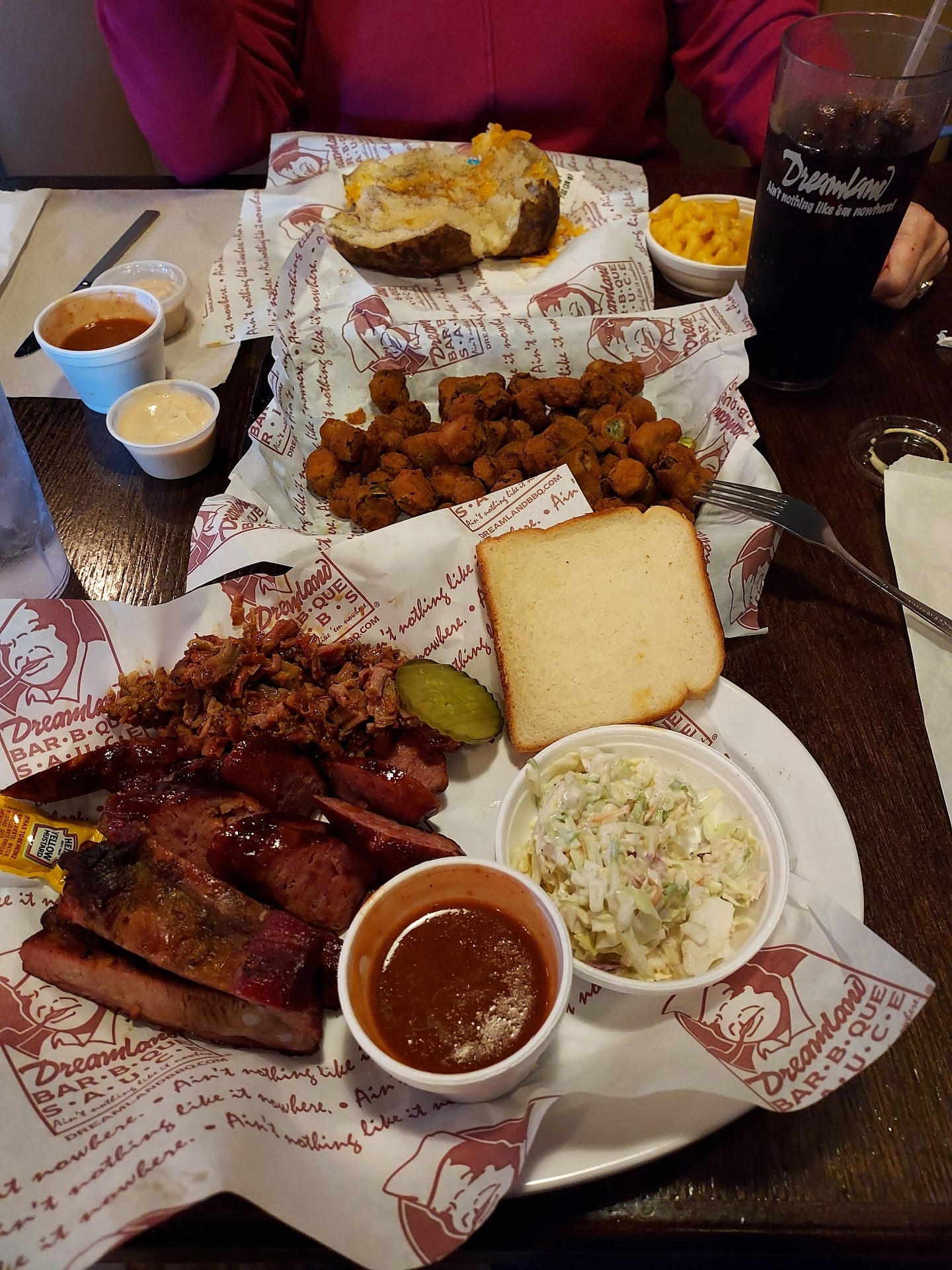 If your travels bring you to Montgomery, Alabama, my wife and I highly recommend Dreamland Barbeque Restaurant located downtown. Recently, we went to the Legacy Museum and spent a couple days in town to visit the three components of this impressive recitation of African American History, spanning slavery to mass incarceration. After a long drive and hours of touring, we yearned for some of the Southâs most authentic comfort food. Living in the New York City area for a combined twenty-seven years, I grew up in the South and vividly recall the tastiness and delight of barbecue and sides. We happened upon Dreamland which is less than a five-minute walk from the museum. There, we found exquisite Southern hospitality and great food. I recommend the dual plate which offers two meats and sides. The pork ribs and chicken with macaroni and cheese and fried okra are a heavenly delight. Fortunately, they leave a stack of napkins on the table. The ribs have a nice color and appetizing grill marks; they are equally tasty and lend themselves to constant dipping in homemade barbecue sauce. The fried okra deliciously satisfies any fan of this side. Beyond the food, one of Dreamlandâs biggest and most rewarding assets is its wait service. They epitomize what you would expect from Southern graciousness and charm. Their quality of service and attentiveness will compel you to leave a twenty-five percent gratuity as we did. In fact, we returned for lunch two days later. That day, I had the pulled pork sandwich with coleslaw and fried okra of course. The big sandwich will hold you until supper time. It is served on a buttered roll, grilled roll with a golden color that forces you to finish the sandwich. Moreover, the waitress that afternoon matched the previous waitress quality of service and consideration. Dreamland offers a variety of items including salads, wraps, breakfast and dessert (banana pudding never grows old). If barbecue and good service are what you are seeking, Dreamland in downtown Montgomery, Alabama...