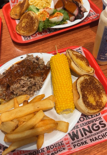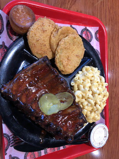 I had the pork sandwich with fries. Meat was bland and dry. (My son tried it and almost threw up at the table.) Sauce was okay. Bread was just a bun, nothing special. Steak fries were bland with no crunch on the outside. My husband had the ribs with fries and squash casserole. The squash casserole was actually pretty good. Chow-chow came with it and was too spicy to eat. He said the ribs were bland and dry. The sauce was mediocre. There was no smoke flavor to any of the meat.