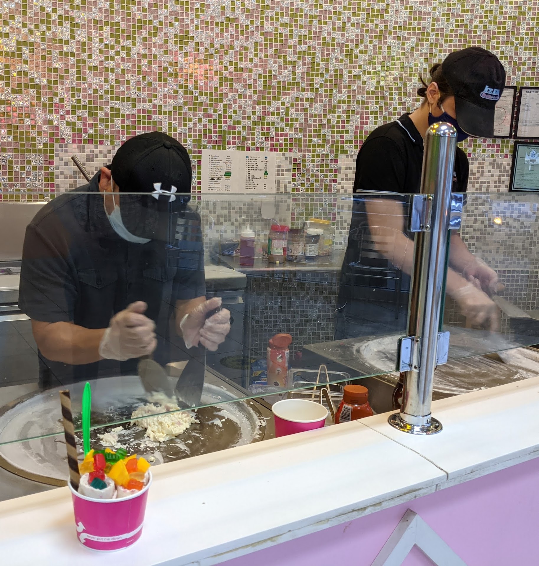 Ā Ā Ā Read moreSo Iām big on vibes whenever I enter an establishment that Iāve never been to. I was visiting out of town and decided to drop in since itās been a while since Iāve had rolled up ice cream in my town. Firstly the smell in here smells awful! There was a bleach smell but there was another scent that was so bad it was pretty unforgettable. The young lady with the braids did greet us but the young lady with the dreads was making someoneās order that was ahead of us but kept stopping typing on her phone while making an order. I donāt care if they do wear gloves thatās not cool and highly unprofessional. You have guests waiting for their order and other patriots waiting to place an order but youāre stopping every 2 minutes to type on your phone. Sad. I didnāt order anything cause that was a clear sign for...