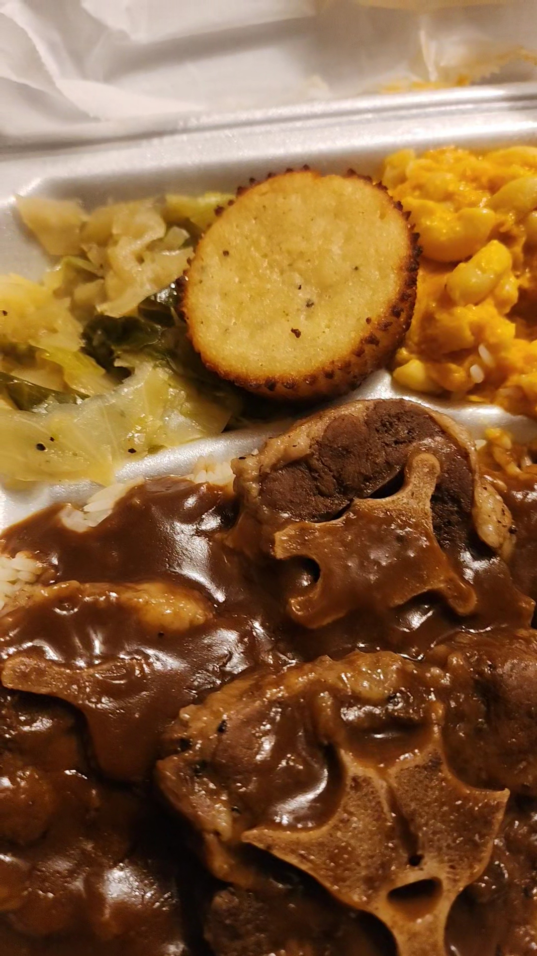 Ā Ā Ā Read moreThis place is a hidden jewel. Dont allow the location steer you away. The service is so awesome and professional and pleasant and greeted with not only a smile but also with love!!! Love the owner energy. First time having ox tails and yesssssss they were soooooo good & tender & very tasty.š The gravy was good. I had catfish a few days before the ox Tails & yummy Also. The portions are big Also. Definitely can't eat it all at one time. LoL The cornbread was my absolute favorite. It's better than the muffins but they was good Also. The cabbage has a small kick so if you're not a spicy person don't get the cabbage. The Dressing was good & moist. Didn't need the cranberry sauce but it was good with & without it. The Mac & Cheese was actually cheesy & homemade.... not frozen or made with cheap cheese like I've seen at other restaurants. The Yams OMGoodness theyre so good. So mad I didn't get an extra side of them. My Guy had the porchops w/gravy & he liked them. Okra was yummy. THE catfish was a large portion and fried perfect. A lil too much seasoning for my liking but very good Also. Everything was literally good! 5stars for me both times. Go Try It Now!!!!! Update. 12/13/24 Finalky retied the greens and I love them also. Got my usual oxtails, Mac and Dressings. Yummy Now go...