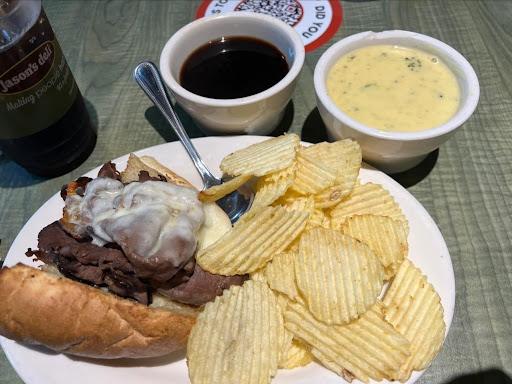 Read moreEaten at Jason’s deli before in Colorado so was excited to see one here when we moved to Montgomery. Confused about how/where to order and nobody was helpful during the process. Nobody even greeted us when we walked in, so we just stood around until someone came over to a register. Several tables had dirty dishes and trash on them. Chose a table and realized how dirty it was when my sleeve stuck to the table. 🤮 Cleaned it off with napkins and water which turned black when we were finished wiping it. Started to really rethink our choice at this point. I ordered the beef eater managers special with a side and soup or salad, and a drink. I didn’t get to choose my side just brought plain chips. The portions were great. The sandwich meat was dry and tough so the au jus came in handy. The broccoli cheese soup was tasty but barely warm and served in a broken bowl. My mom got the Reuben sandwich with chips and a drink. The sandwich was huge and looked great but the sauerkraut was so wet the bread quickly became too soggy to enjoy, and there was no French dressing on the sandwich, pretty standard for a Reuben. The drink station was filthy and I seriously considered not filling my cup. The entire store was dark, dingy, and dirty. The floors were just as sticky and littered with garbage as the tables. We definitely won’t be back. Paid way too much, over $30, for mediocre food in an unacceptable atmosphere. There were plenty of employees and only 3 other tables with customers so not sure why it was so dirty. Very disappointed I was looking forward to trying the salad bar but after seeing how unclean the restaurant was...