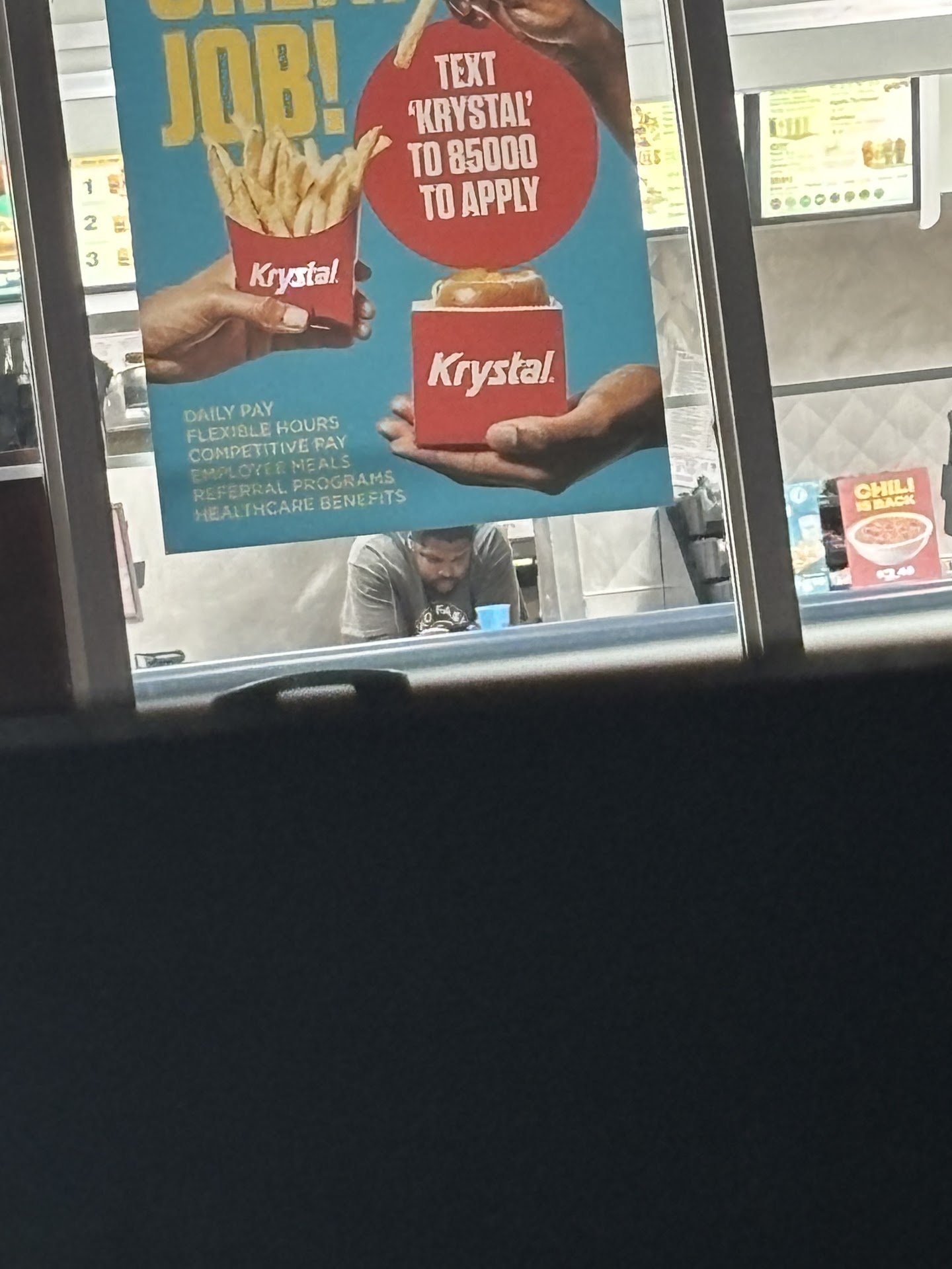 On Saturday around 1:00pm, I visited the Krystal restaurant, referenced in the subject line, via drive through. I was already pressed for time because I was on my way to catch a flight out of Montgomery. Where I currently reside, there isn't a Krystal or a White Castle, therefore, I try my best to stop at one of these locations (mainly Krystal) when I am out of town.