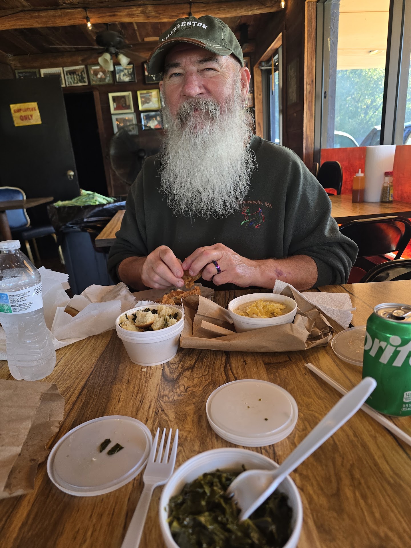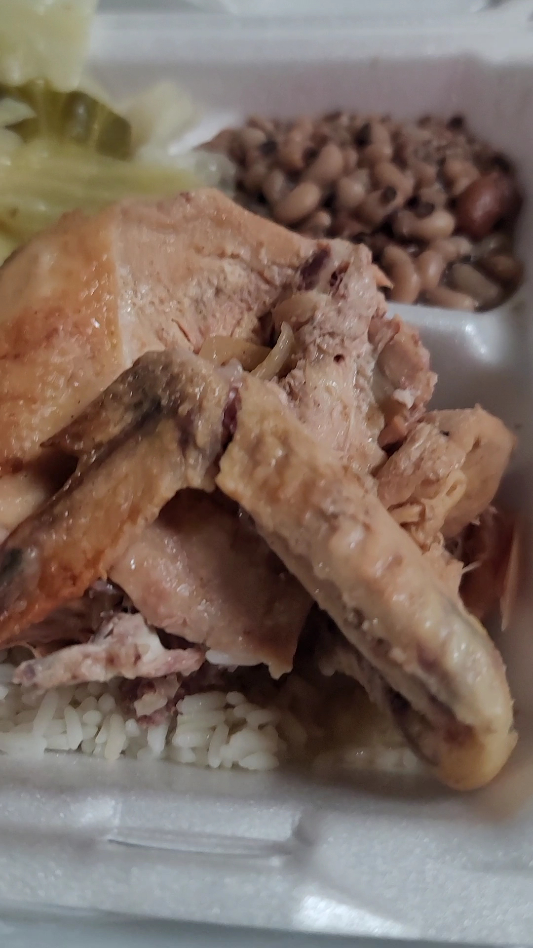 Read moreLove supporting small businesses, but dislike wasting money. I saw a very popular blogger posted up at this business and giving kudos and raving about how good the food is. But in my case, I did not get that good quality service. I literally stopped by this restaurant after a long drive from New Orleans, before heading East on I-85. On a hot sunny day, it was hot inside as well. There was one car in the parking lot, one car in the drive thru, one person in line at the counter. Food didn't look tempting to me, but I trusted whom I thought was an unbiased reliable source. Listen, I ain't never eating raw food. That is what I got. I asked for baked chicken, cabbage, corn bread muffin, black eyed peas, and white rice. I bought a plate, drove 80 miles home, then sat down to eat, but ended up tossing the plate. Judge for yourself. See my video. Anyway, I just really wish they would pay more attention to foods served. Maybe I will stop by another day. But it is going to be a good minute. I cannot readily recommend...