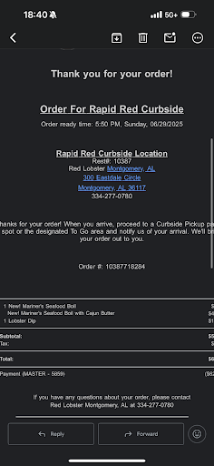 My family and I dined at the Montgomery, Alabama location on 05/12/2022 for our youngest child's 13th birthday. She requested to have her birthday dinner at Red Lobster because at other locations we frequently visited, the food and service have always been consistently amazing. Unfortunately, this is not what took place that evening. The food was over salted and over-cooked. We ordered mussels as an appetizer. The server first brought out Brussel sprouts. When I corrected his mistake, he brought out a bowl of mussels, without the bowl to release the steam, without the small fork with the lemon wedge, and without the garlic bread, which later came; hard and cold. We also ordered mozzarella cheese sticks that were cold and not golden brown. The marinara was cold as well. On to salads, my daughters and I all ordered Ceaser salads, however, they received their's and I did not. However, what they received was overdressed and limp. My spouse requested Italian dressing and never received that, nor a vinegar and oil option. Our entrees were terrible! My wife ordered a pick two with a medium sirloin and Walt's friend. She received a medium-rare steak and no shrimp. When I corrected the server again, he brought out a shrimp scampi. I corrected him again, and he produced the most over-salted fried shrimp ever. The birthday girl ordered Lobster fest and my youngest ordered an Ultimate Feast and her crab legs were watery and unflavorful. The flounder on my pick two was old and flavorless. I spent 167.17 dollars for the food we left all on the table. Her birthday dinner was ruined and I haven't even spoken about the fact that we had to wait 15 minutes to be seated in front of a bathroom that wreaked of urine. I was a server at a Red Lobster for 5 years in two states and have visited one in just about every state and I have NEVER had such a terrible experience. We left hungry and sick. I am not on hypertensive medication but I was literally sick for the next two days and so was my spouse. This location needs major assistance from corporate or I fear they may kill someone. It is clear that the corporate recipes are not being followed, nor is the pride being upheld to the normal standard that Darden Restaurants...