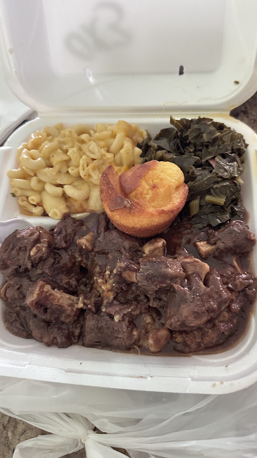 My son and I entered the establishment and was amazed! The cafeteria style setting was delightful, you can actually see whats being offered. We ended up ordering turkey wings and cornbread dressing with cabbages, because they were out of collard greens. Everything was great! I have been back several times since and I am never disappointed! Please dont get me started on the desserts! I am in love with the peach cobbler cupcake, Miss Angie is putting so much love into those deserts!