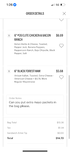 Read moreThe place is clean but terrible customer service. There was a special going on where I could get a foot long sub, a cookie, chips, and a drink for $9. It had to be the special of the day which for that day it was a club I told the lady working there that was good expect I didn’t want the turkey or roast beef on it. Which she said was fine and I could still get the deal. Then after my sandwich was made I went to the counter to check out and I was told I could not get the deal. After arguing for a few minutes they finally gave it to me. I will likely never go back there again which is unfortunate because it is quite close to my work. Additionally they also gave me...