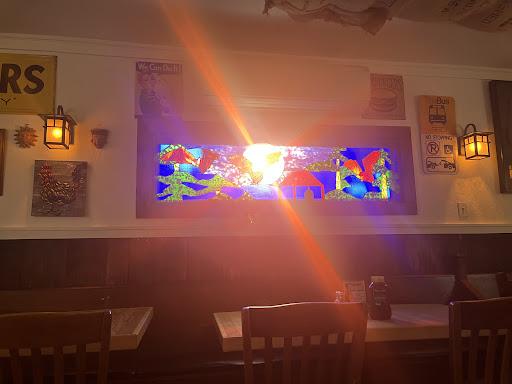 The Belfry is an old schoolhouse repurposed as a bar/restaurant. It features a good sized, well stocked bar with a couple semi-local brews (wish they had something from the nearby Kingdom Brewery)... Smallish dining room inside & larger patio for al fresco dining. Inside is sort of loud & tight quarters. The booths are stock-straight & not-quite-comfortable seating. Tchotchke abounds. The Specials board features many dishes - heavy on the seafood (a surprise in the Northern Kingdom), as well as steaks & chops... the scallops were perfectly cooked - tender & flavorful. Their Jay Peak Burger, although a little undercooked, was tasty too - thick & juicy. Fresh lettuce, tomato, onion & a dill pickle wedge on the side, garlic spread & topped with a fresh (house-baked?) bun. The burger was paired with house-made fries... all good. Didn't try the desserts which were numerous and all sounded good. The service was lacking somewhat - no bread (though promised it was coming) & the appetizer arrived less than 5 minutes before the entrees came to the table... someone forgot to put in the order? When we arrived at 6ish, the dining room was jamming. Definitely an early dinner crowd - by the time we left around 7:30, the room was pretty much cleared out. Nutshell: decent food, meh service, good reuse of space with...