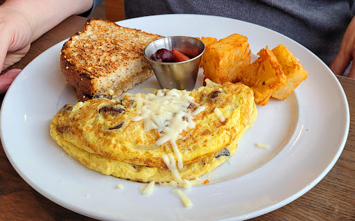 Read moreThis is a great place with excellent food, great presentation, and quality ingredients. I had their eggs Benedict and a side English muffin with strawberry preserves. As the same muffin is used for the eggs Benedict I will say it is a quality muffin that came out split warm and buttered inside with the strawberry preserves soft and delicious. The eggs Benedict was wonderful as it has cubed hashbrowns that are both dense and moist, but moist inside not greasy with a crisp outside reminiscent of a home fried potatoes exterior. Delicious Then there is a mini fruit cup The eggs Benedict themselves start with a base of that excellent muffin then a ham that is perfect for this application... then you have a nice hollandaise and attop it is a perfectly poached egg; that when split flows nicely over the entrée. I would recommend a side of their toast to sop in the egg as the tost is very nice and tasted excellent. The mushroom and Jack cheese Omelet is a beautiful example of an Omelet as the ingredients are not just in the Omelet but present In a way that they don't seem over cooked into the egg. It's almost like they were able to make sure they all stood out and you could taste them unlike other omelets where they can be bland ingredients. It shows they know when to add the ingredients to the egg properly so you can get the flavors that contrast in texture but compliments the others flavor... came with that wonderful toast and the hashbrown cubes; it also came with that mini fruit cup. This was a...