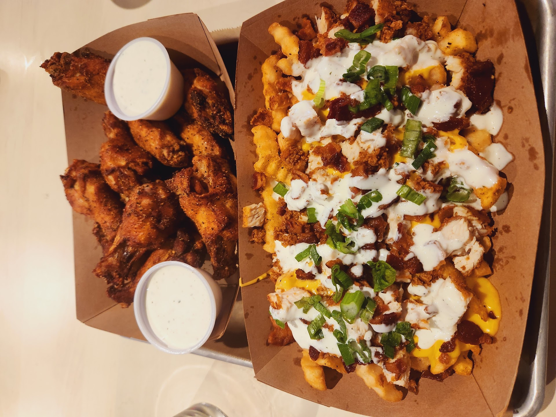 -Food- We ordered the hot lemon pepper chicken wings and loaded fries. Wings were fried perfect and tasted good. Didn't really get the spicy flavor, but they were flavorful!