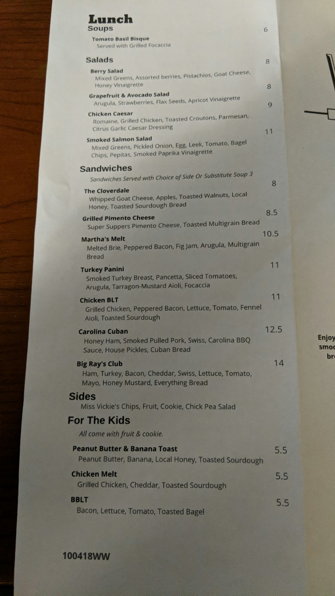Our experience may have been better had we not had a string of several small complaints that made the next one feel more significant, beginning with an employee bypassing my husband (he cannot use the stairs) who had waited for the downstairs restroom while I ordered. But I get it. If you are young and nimble, you’d probably assume that someone waiting for the restroom will stand in front of the restroom door in the small hallway. And this is not the first place where we’ve experienced overpoliteness getting in the way.