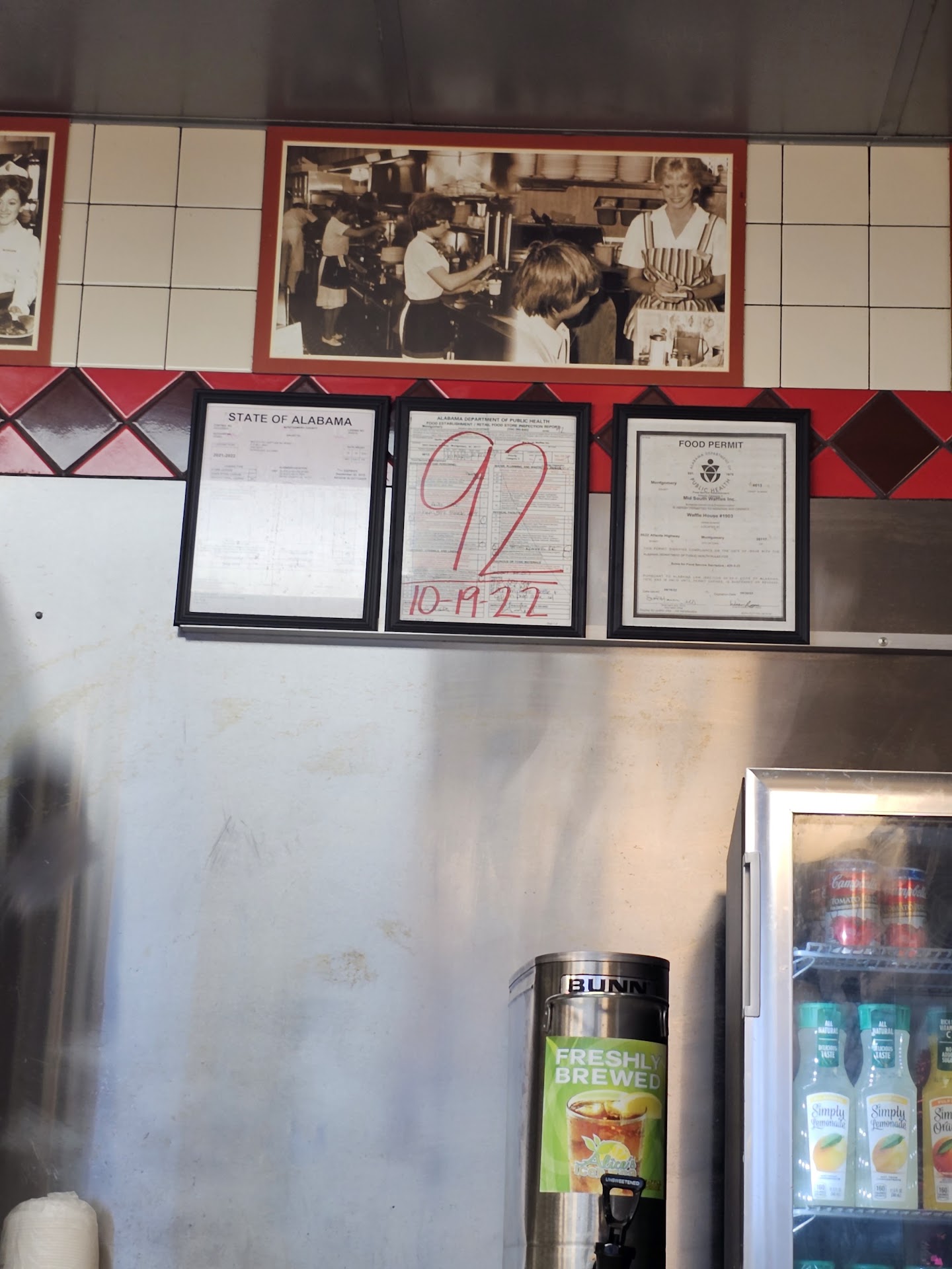 Read moreWorst waffle house ever. We arrived at this location this morning. There were two employees outside (not knowing that one of them was goin to be our waitress) having a loud conversation with someone in a car. We walked in, sat down. One of the other waitress staff got our silverware and drinks. I ordered a orange juice which was sour. So she flags one of the waitresses outside to come on in. So they come in, she never introduce herself. I got here attention, to tell her my oj didn't taste right. She say o I forgot to tell them that them a customer complain this morning about the on being sour. So she brings me a coffee. Then she goes a stood over by the sink with the other staff gossiping about stuff that happen yesterday. One of the managers called her about stealing milk, but she only took a cup for her girl Scout cookies. She went on and on and on. Finally she decided to come over and get our order. Never smiled or even told to make any kind of conversation. After she get our order she goes right back to the same conversation. She texting on her phone lays then phone down on the wood board the they cut sandwiches on. Digesting! Next is the grill cook cross contamination, his handling raw meat ( chicken breast, and steak) and putting bread in toaster and cut sandwiches with the same gloves. I didn't even finish my food, I left everything. Somebody is going to get really sick eating from this place. I wouldnt advise anybody to eat from this place. Very unprofessional. This is supposed to be a place of business leave your personal business at home, I'm came here to eat not to hear about your drama. Management needs to do...