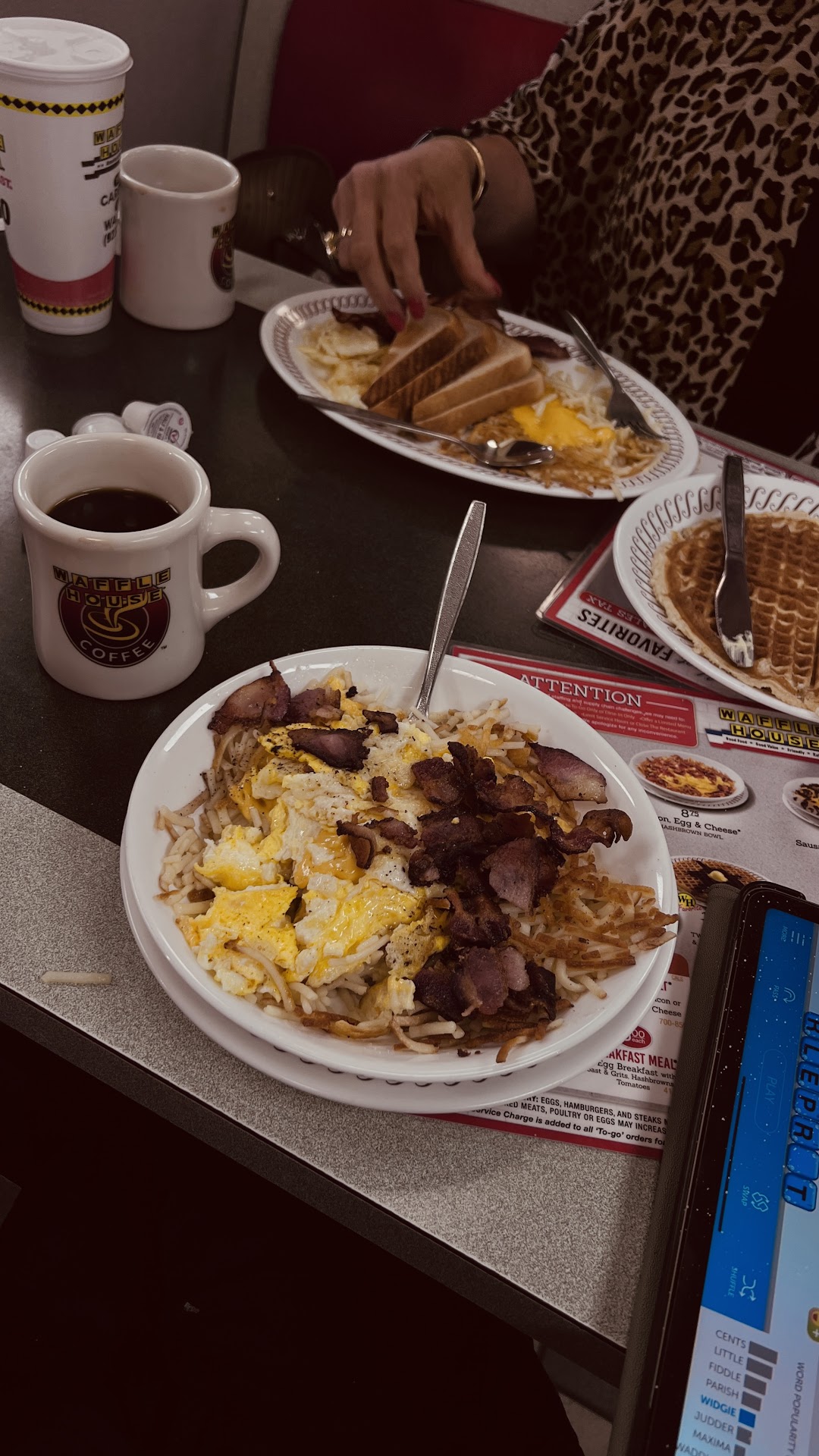 Read moreTHIS WAFFLE HOUSE #1430 was 10000% by far the BEST most delicious and satisfying waffle house experience my mom & I have ever had, and we do love us some WH (even the more unpleasant ones). we went at 2am after our plane landed at MGM. Jessie was our server and also kept that store on LOCK! She was juggling multiple customers with multiple requests and making sure everyone was taken care of. I didn’t get the girl cooking’s name but she made THE BEST WH we have ever had and they were the only 2 employees there. Jessie definitely has great management skills and knows how to balance out great customer service with making sure people aren’t stepping out of bounds (there were some shady dudes lurking around but she shut them down and they were gone). Store was also super clean, not freezing cold, bathrooms were super clean. LOL just wrote a whole essay on how rad this particular waffle house experience was, so, you know it’s real….11/10 stars. Picture doesn’t do justice cus I was about to inhale my meal .1 seconds...