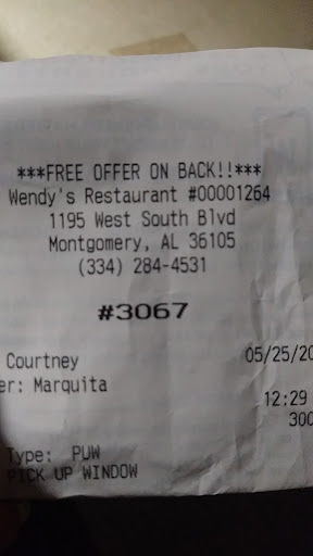 I came from Lineville, AL to the Chisholm area to see my family and handle business. Was on the road doing things and got hungry. Went to Wendy's at 1195 W. South Blvd. Ordered $41.65 worth of food. Had a total of four bags of food. I spoke my order slowly after having to ask if I needed to slow down with calling out my order. Did that. Had to even have them fix the order on the monitor screen as I was ordering it all. I explained clearly how each meal was supposed to be! Got to the window and paid. We had three large drinks and a regular size. The girl in the window put all these drinks in one single thin cardboard cupholder. Passed it out the window to me with the cups leaning and all. Asked if we had a hand on it and let go. Which almost wasted every drink right then! But, ignored me when I told her that it was too much weight in it to be secure. Then, got my bags of food with each meal separated. Which was a great idea. My lady's food was made wrong. Main person's food I worry about. I hopped out to correct it. Scared the lady at the window and stopped traffic. Made it back to Chisholm area to finally eat and opened my bag to realized they messed up my order. Was already drained from a day at work and traveling. Asked for a specific made meal. You messed up and fixed my lady's. But, how hard is it to communicate and get orders out correctly. I guarantee you that your waste, drive through times, complains, and more would plummet if your staff could get it right the first time. If you want your food right when you get your employee meal, you should give your customer's orders the same treatment. I have worked in several fast food places and restaurants from Tennessee to Mississippi to Florida and in Alabama. Quality of service and attention to details are what kill a company!!! And, the photo is where I was standing in line to have them fix my...