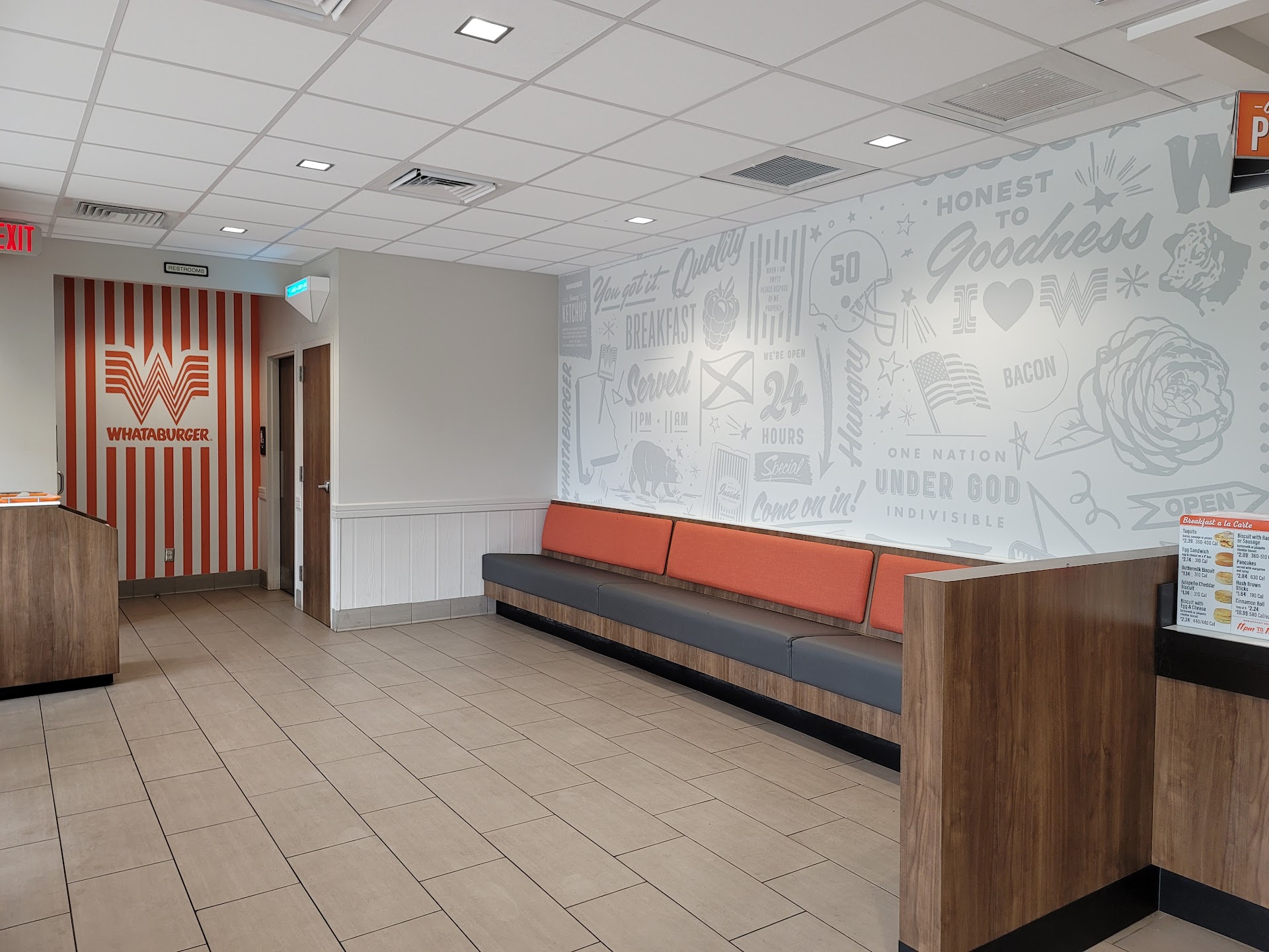 Ā Ā Ā Read moreMy first time at a Whataburger and I was very disappointed. I'd heard great things about the chain but that didn't happen at this location. I suppose since it was empty on a Saturday night at 6 pm after opening only a few months ago, I should have known better. When we walked in, two employees were sitting at the counter eating and yelling back to the kitchen to have additional food brought out. When we went to get our drinks, one of them pushed past us to take the last of the napkins out of the dispenser. No excuse me or anything. Our food arrived lukewarm and while I had ordered the cheeseburger, it came with bacon and loose mushrooms in the wrapper. I got water from the fountain drink dispenser and it tasted like well water. The salt packets given by the server were wet and the salt was clumped inside. I got the same wet packets from the container by the fountain drinks. The employees continued their loud conversation with the kitchen staff and numerous employees came out and sat with them. The floor was sticky as if it had been mopped with dirty water. I saw 100 on the health inspection but it must have been when they first opened. The bathroom was appalling and obvious no one cared about it's condition for health, safety or customer experience. We also saw a fender bender in the parking lot. The woman started to drive away until my boyfriend got out and looked at her. She then pulled into a parking space and went inside. I hope she told the person what happened and didn't just use the restroom. I won't be going back to this particular Whataburger and based on the empty tables tonight,...