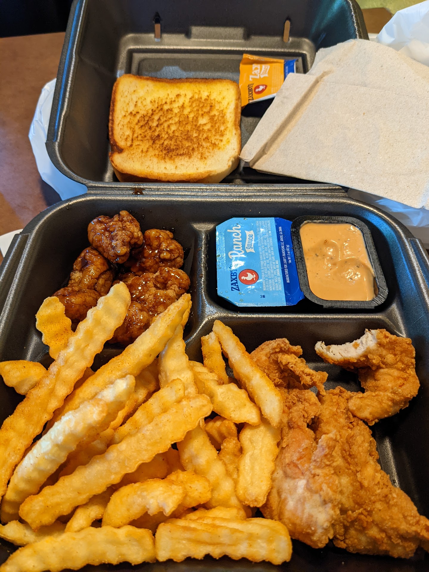Read moreIf I could rate it a fifth of a star, I truly would! This is by far the worst experience I have ever had at a Zaxby's . Let's start with their drive thru which is a "one way in and no way out" type ordeal . Once you're in the line, you're basically stuck there because of the the structure of it . After waiting at least 15 minutes to order (it was not lunch time--please know that ) , I would have thought I would have some of the best service ever . Well they had ONE job .... All I needed was a " mild Boneless Wings Meal" . I pull up to the service window and plan to pick up just that , well wasn't I WRONG ! I was given a bbq boneless wings meal . So guess what... I had the pleasure of waiting an additional 10 minutes for ,this time , a half done meal . The part that really sucks is that I could not tell the chicken was not cooked properly until biting into it (the downside of having chicken smothered and topped like that ) . Of course , I had already made it home by the time I discovered this . I drive at least ten minutes back and ask for the manager . Anyone but the manager (judging from Uniform appearance ) comes to speak to me . In the middle of me explaining that this is my 2nd time coming back , she snatched the receipt out my hand and begins to demand the line staff to remake my order . Since I wanted to be understanding that mistakes do in fact happen, I took the order again thinking "third time is a charm ." A lengthened story , partially shortened , 3 of the 5 wings were still undercooked ! This is an awful establishment and if I never eat there again , it would still be entirely TOO soon . Close it down and build a restaurant that knows that in NO case , should chicken be undercooked . Maybe the line workers will serve better at lets see ?? A...