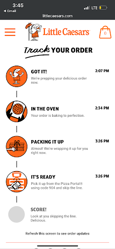 Edit: I wanted to update my review because not only did I have this experience, but I went once before this too. The restaurant had locked the doors and stopped people from ordering because they were "too backed up with orders." So instead of letting orders get added to the queue, they completely prevented any new customers from even entering the store. This backlog they were referring to turned out, if memory serves me correct, to be somewhat less than 10 orders with â15 pizzas total. That day I encountered the same issues trying to place an online order, though apparently this time the error was because they disabled online ordering. I ended up ordering and just going to Dominos. They had a screen with about the same amount of orders as Little Caesar's on it but I had my pizza within 15 minutes of ordering.