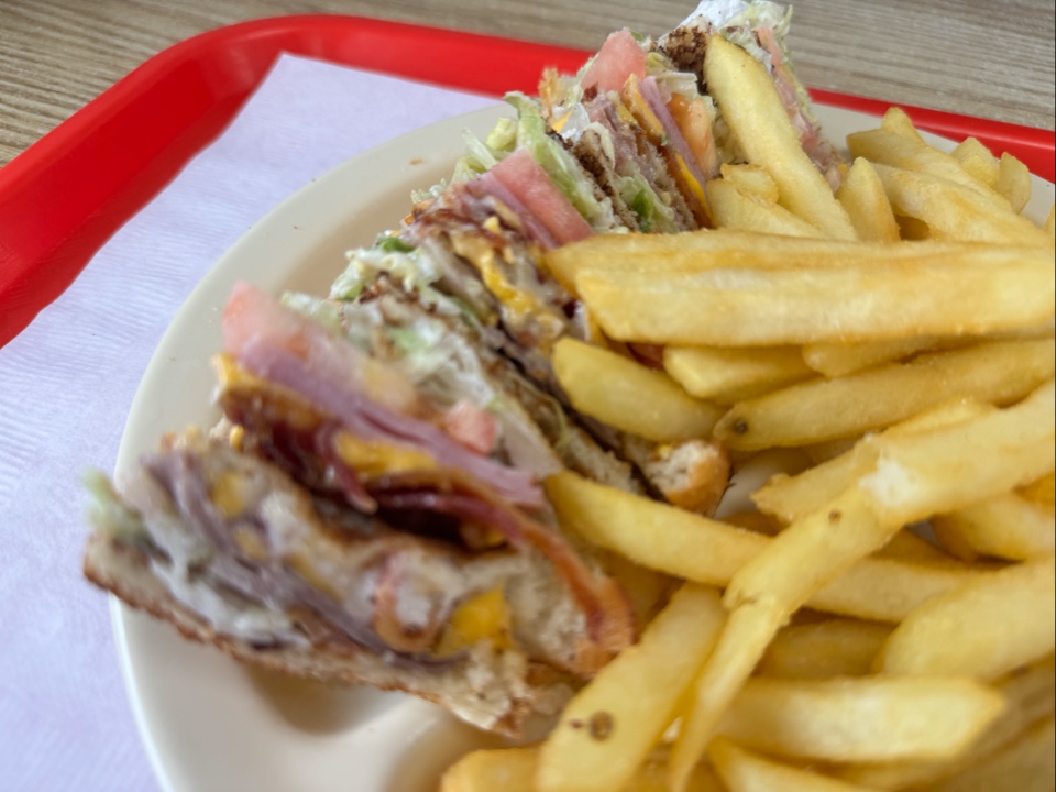 The club sandwich is perfect. Assortment of meat, cheese, chopped lettuce, mayo and tomato.