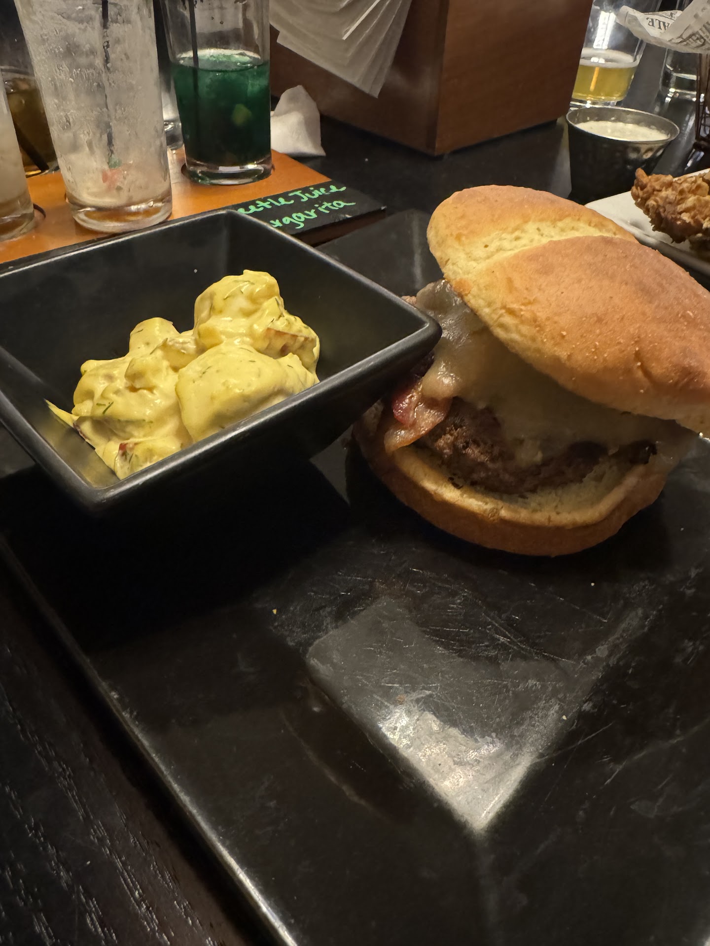 After dinner we sat on the bar side for live music and a couple more drinks. Love the atmosphere, especially the vintage old kinetic PBR marketing pieces in motion over the bar. I usually like a surly bartender, and maybe itâs just his game or it was a really bad day, but the bartender didnât seem happy at all. Never good to shout back at a server: âdonât ask me, no one ever tells me whatâs going on.â Bad juju.