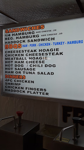 Not much atmosphere, but the food is great. Sandwiches like the burgers, steak sandwich, meatball hoagie, and shredded BBQ (pork, chicken, beef, turkey) are served on fresh buns, with sides like pierogies, onion rings, and crinkly fries. The fried chicken is excellent. Kids have special choices, too.
