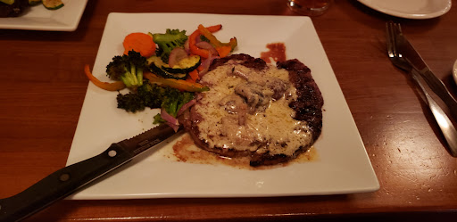 The reason I gave it 4 and not 5 stars... My wife and I both got the Broccoli-Cheddar soup. It was good, not very hot (you didn't need to blow on it to cool down) and could have been cheesier, but tasted fine. My wife got the Caesar Salad, which came with Tomatoes and Black Olives, a first (I don't think it should have). I got the House Salad, but they brought the wrong dressing, which they caught as they brought it out and fixed. For the main dish, my wife got the Bleu Fillet, well done. It came out medium but was still pretty good. I got the Prime Rib Eye, medium. It was VERY good! Desserts- my wife got the Creme Brule, which was also REALLY good! I got the Chocolate Cream Cake, it was okay (dry and could have been richer in chocolate), my wife makes a better chocolate cake, I didn't even finish the cake.